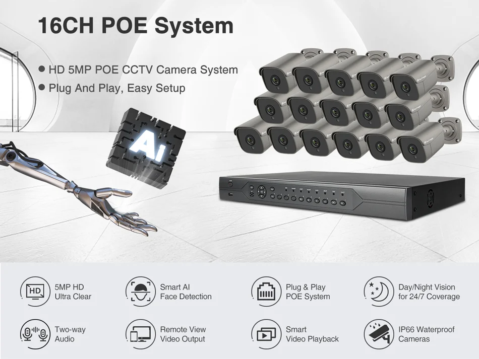16CH POE NVR + 8 камер/16CH POE NVR + 16 камер на выбор