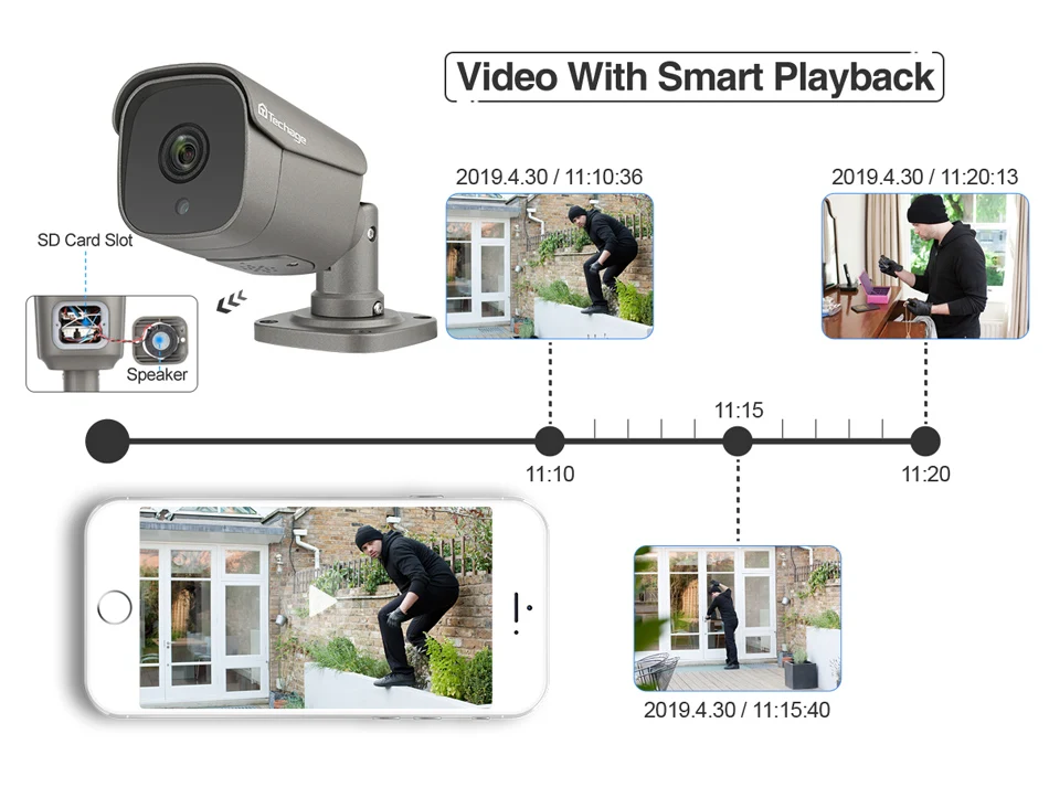 Когда кто-то врезается в зону съемки, камера издаст сигнал тревогиИ сообщения тревоги будут загружены в приложение для телефона