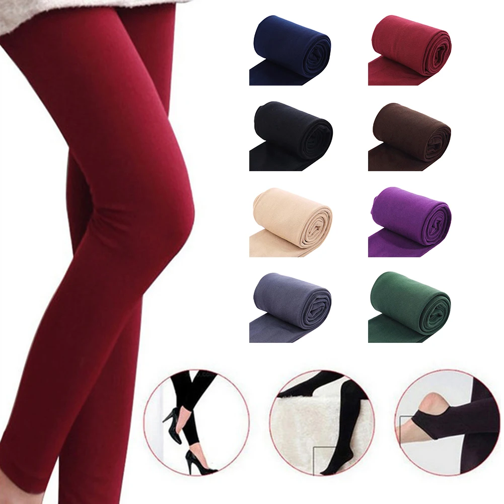 Женские осенние Однотонные эластичные флисовые теплые укороченные Леггинсы со стрепками