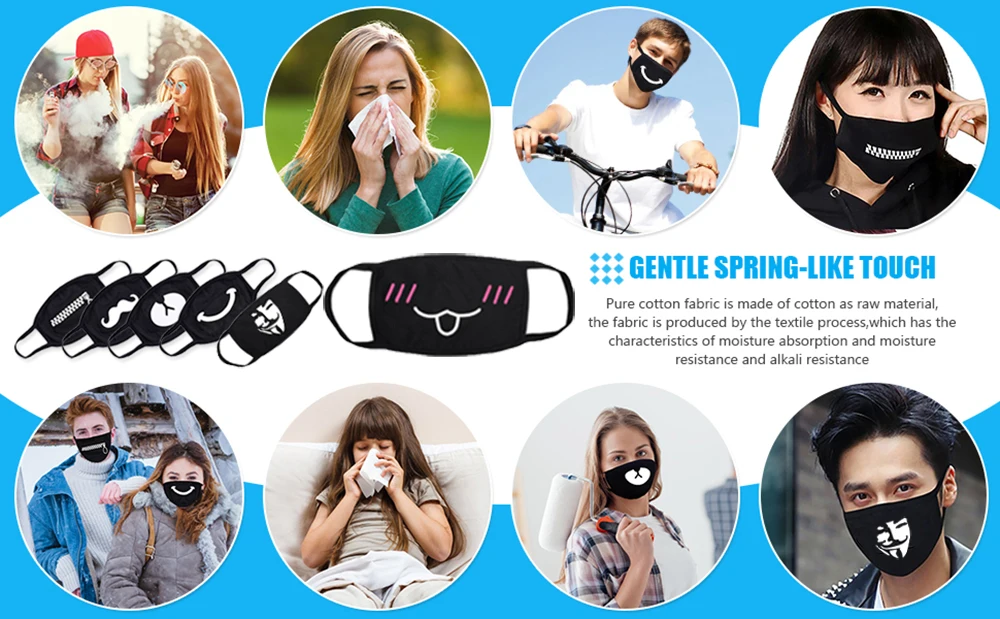 Классическая белая мультяшная маска изготовлена из мягкого, легкого, эластичного и дышащего хлопкового материала