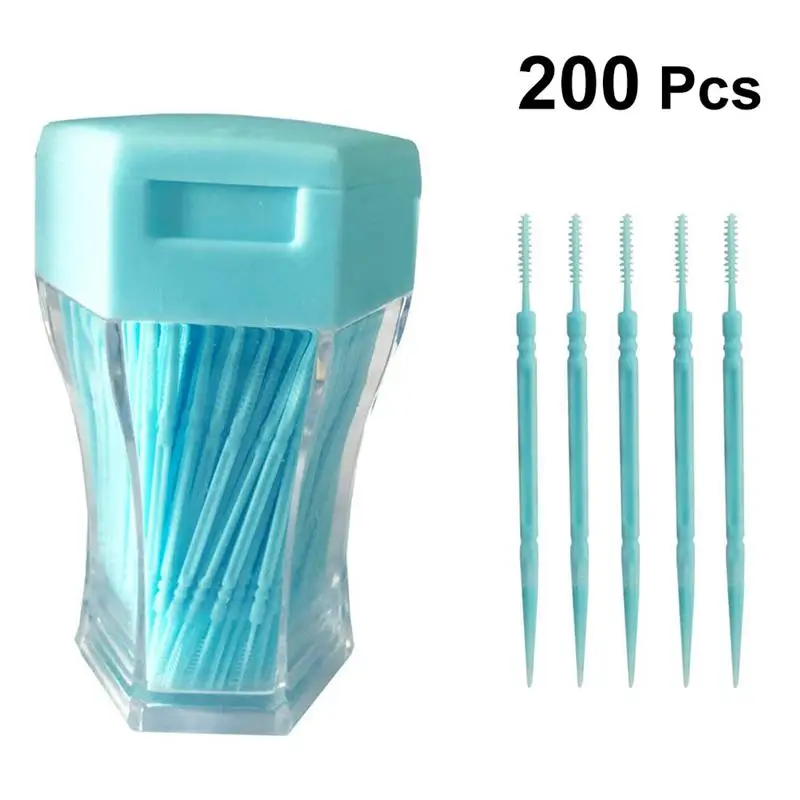 200 шт. двухголовые зубочистки Мягкие пластиковые уход за полостью рта межзубная нить щетка для чистки зубов межзубная щетка
