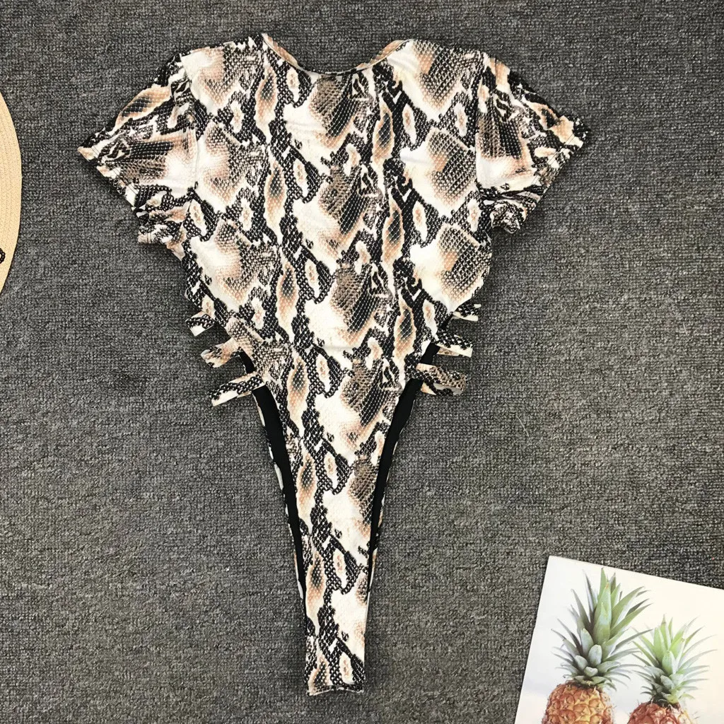 Женский леопардовый сексуальный комбинезон с v-образным вырезом пуш-ап пляжный бикини цельный купальник