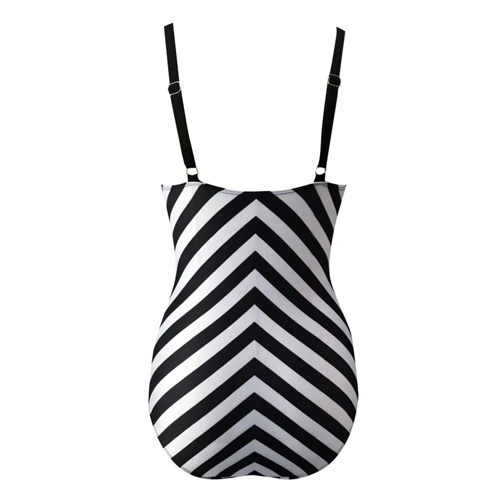 Для женщин цельное платье с бюстгальтером без брителек, пуш-ап, на шнуровке, в полоску, пляжный костюм, купальник, бикини