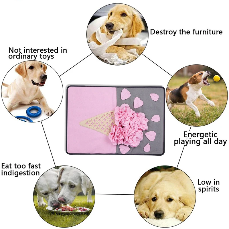 1), нюхательный коврик-это не только коврик для кормления собак или кошек, но и отличная игрушка, которая вызывает любопытство собаки и стимулирует интерес к собаке, поощряя естественные навыки поджигания.