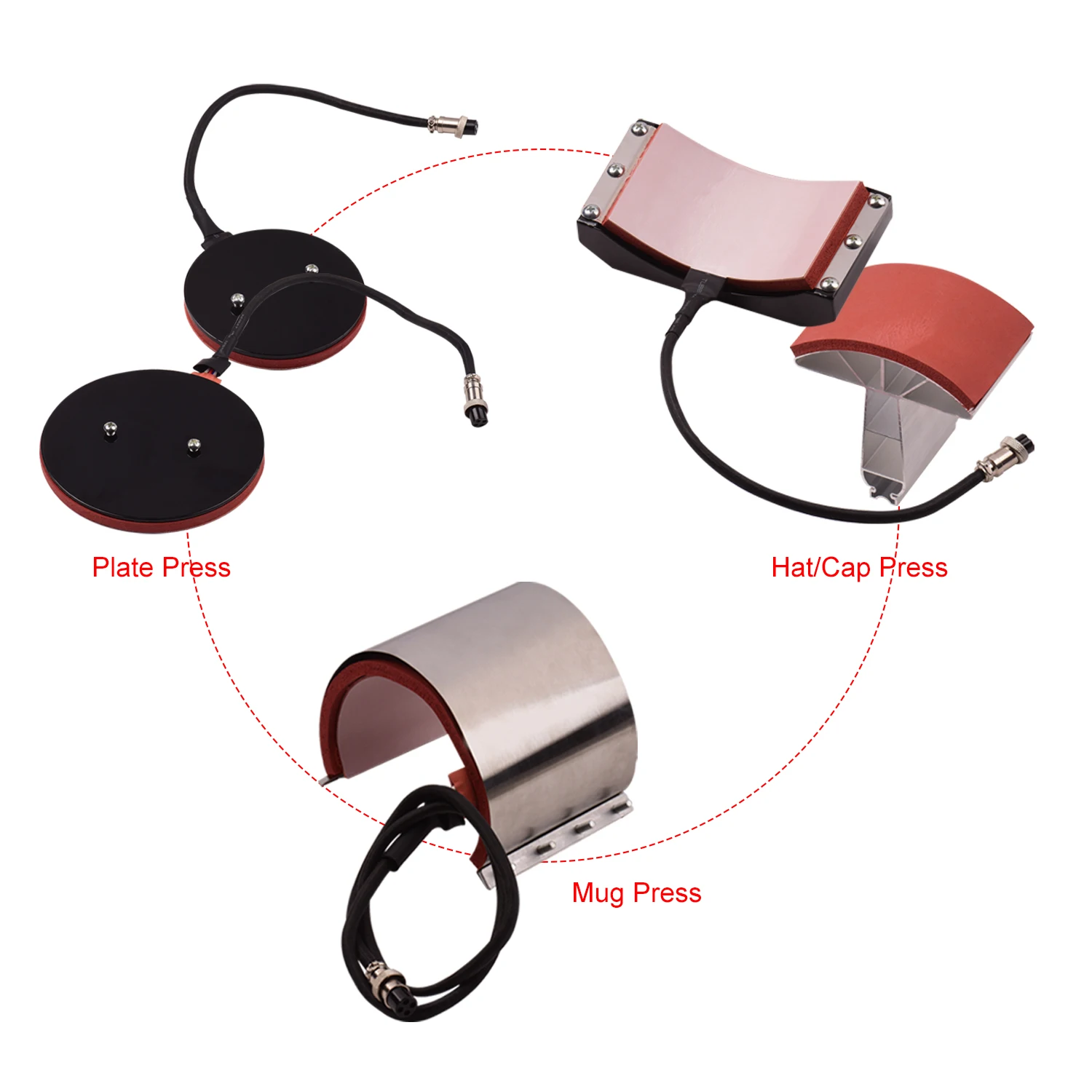 Термопресс-машина может передавать буквы, цифры и изображения на футболки, одежду, сумки, коврики для мыши, керамическую плитку, тарелки, колпачки, кружки и другие плоские всплывающие предметы. Идеально подходит для хлопка, волокна, металла, керамики, стекла. Подходит для производства подарков, рекламы.