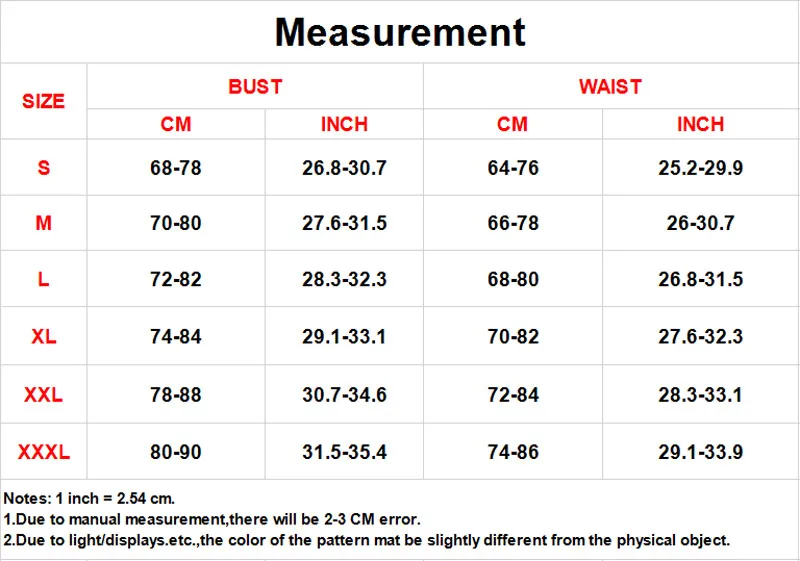 Модный дизайн, 100% новинка, высокое качество! Качество на первом месте и самый лучший сервис. Изготовлены из высококачественного материала, нежного для женской кожи; Обязательно Подарите вашему меду или мужу большой приятный сюрприз Цвет: как на картинке Размеры: S,M,L,XL,XXL,XXXL Примечания: 1 дюйм = 2,54 см Пожалуйста, примите во внимание возможную погрешность в 1-2 мм из-за ручного измерения, Пожалуйста, внимательно проверьте таблицу размеров, прежде чем купить товар. Из-за различий в мониторах и освещении камеры могут быть небольшие различия в цвете. Спасибо за понимание!