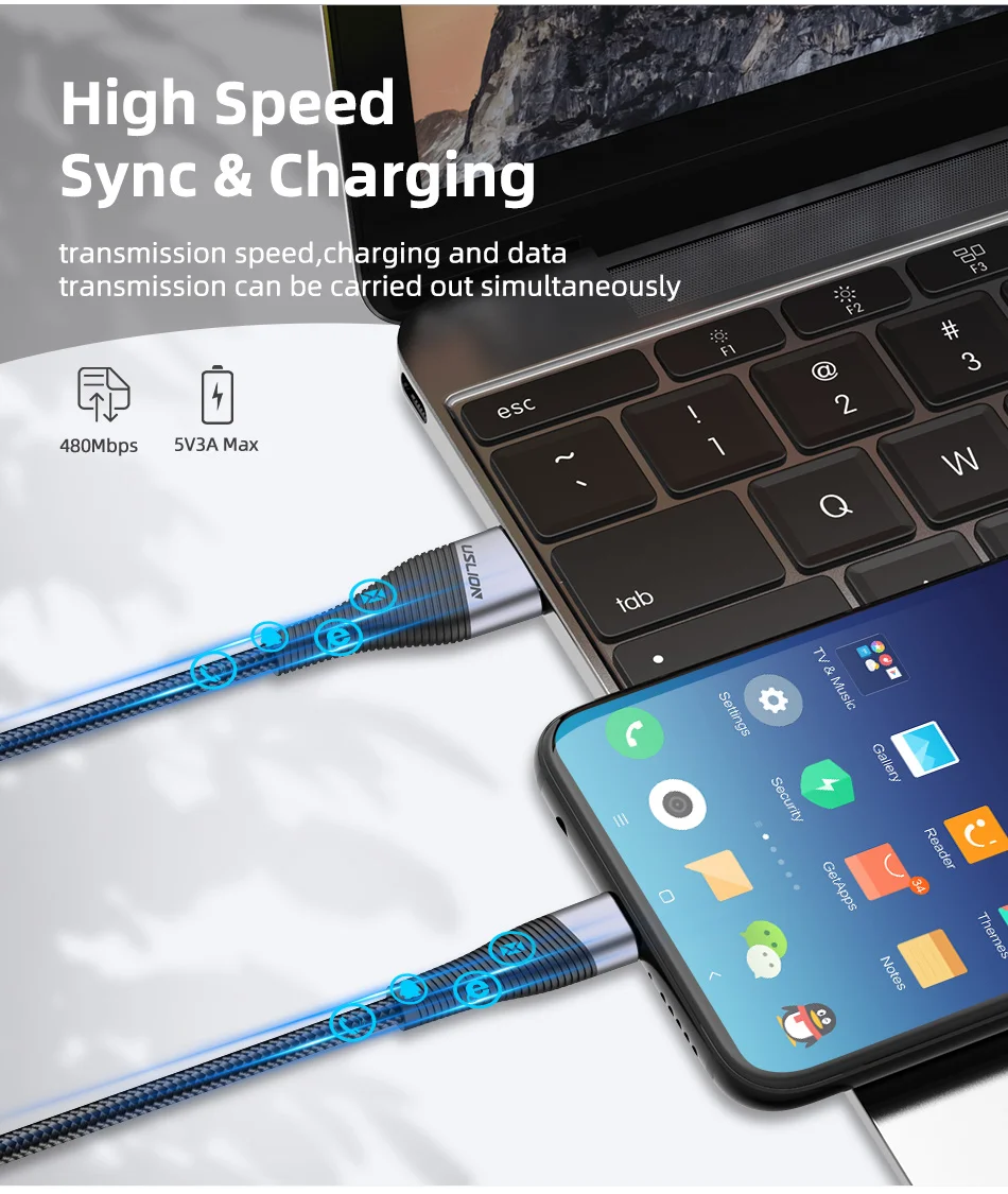 Кабель USLION Quick Charge 3,0 Micro USB