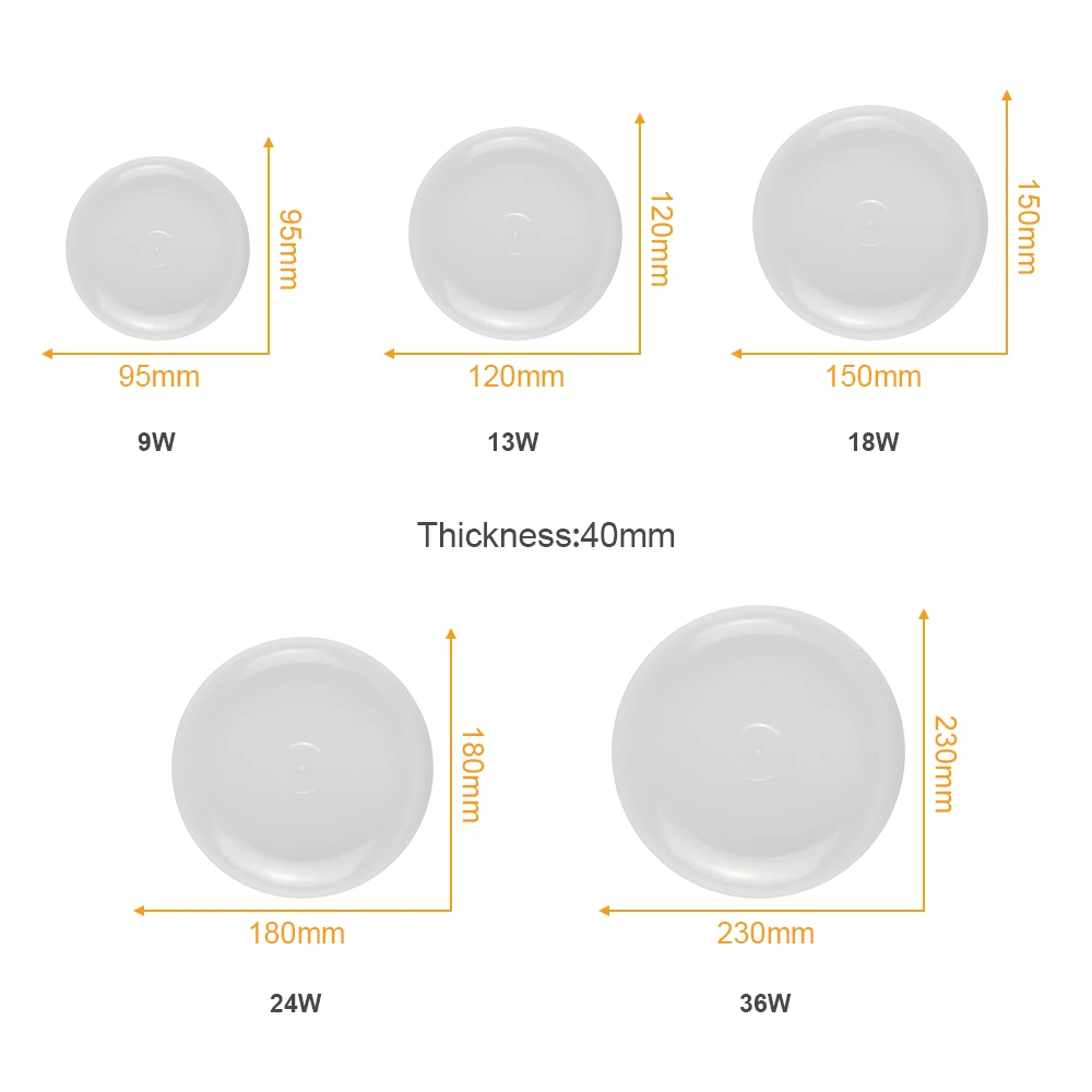 Мощность: 9/13/18/24/36 Вт