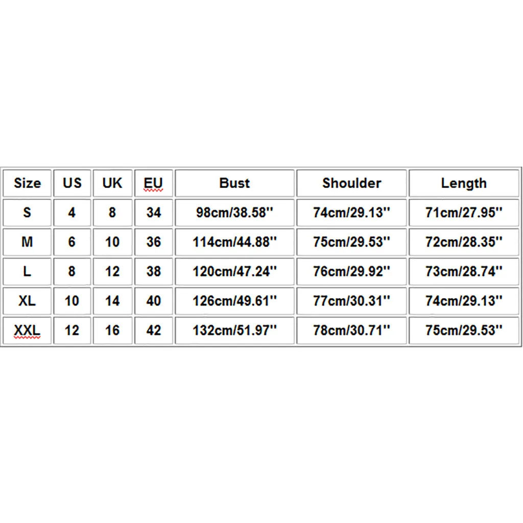 Размеры Свяжитесь с нами Великобритания ЕС Обхват груди Сумка на плечо Длина S 4 8 34 98 см/38,58'' 74 см/29,13'' 71 см/27,95'' М 6 10 36 114 см/44,88'' 75 см/29,53'' 72 см/28,35'' L 8 12 38 120 см/47,24'' 76 см/29,92'' 73 см/28,74'' XL 10 14 40 126 см/49,61'' 77 см/30,31'' 74 см/29,13'' XXL 12 16 42 132 см/51,97'' 78 см/30,71'' 75 см/29,53''