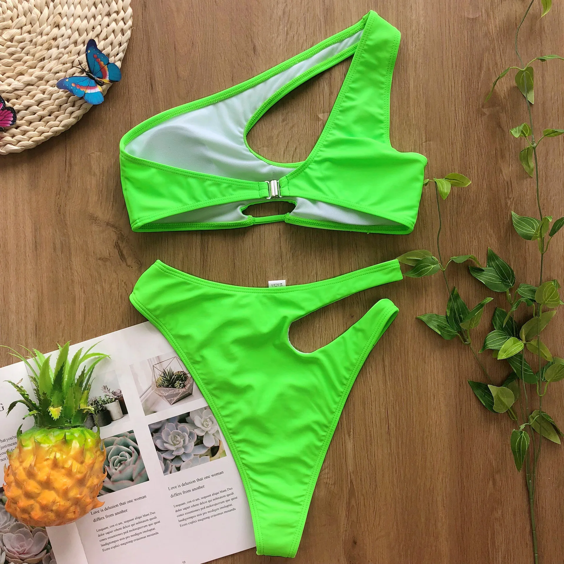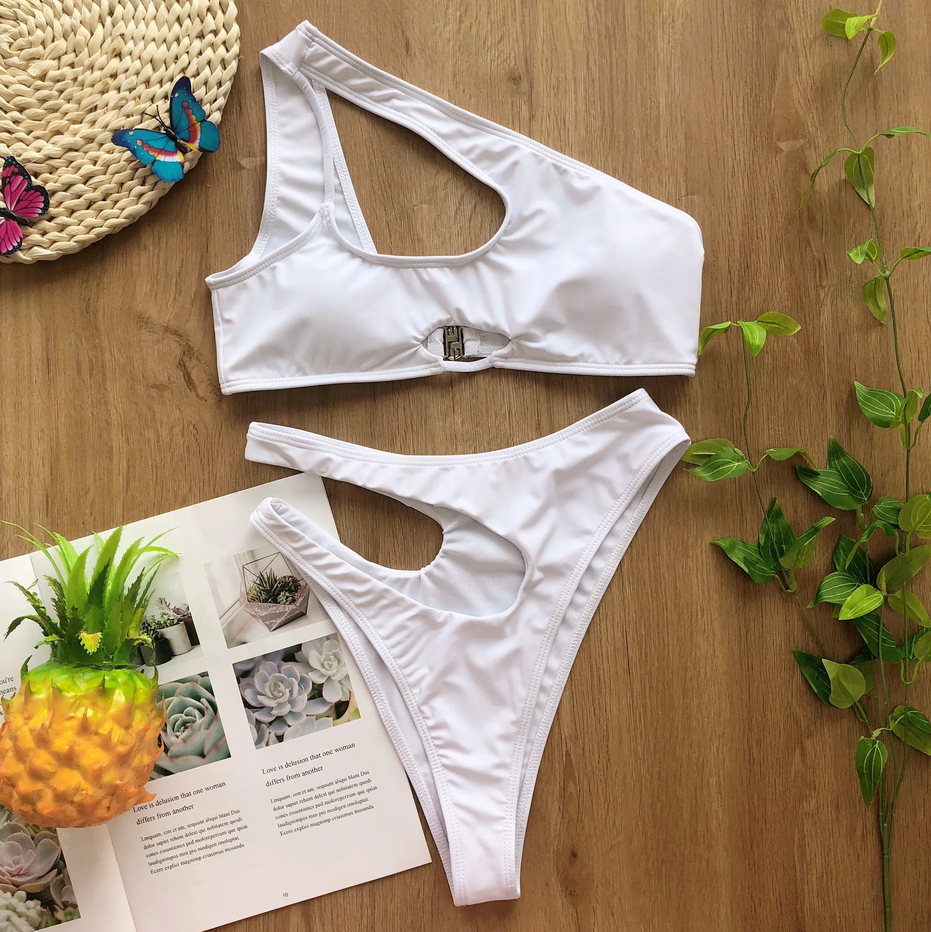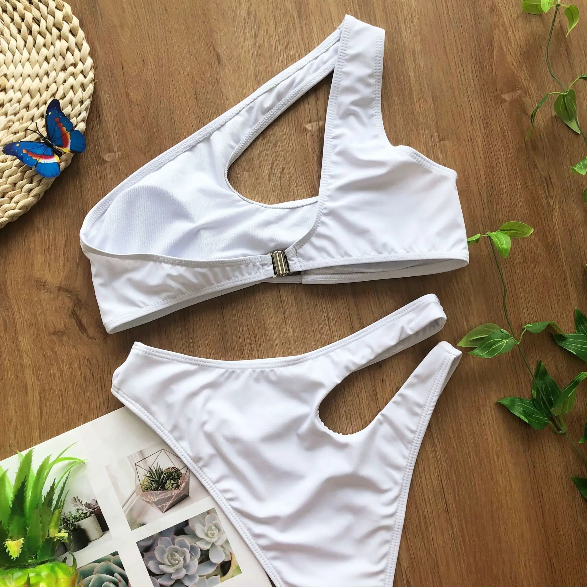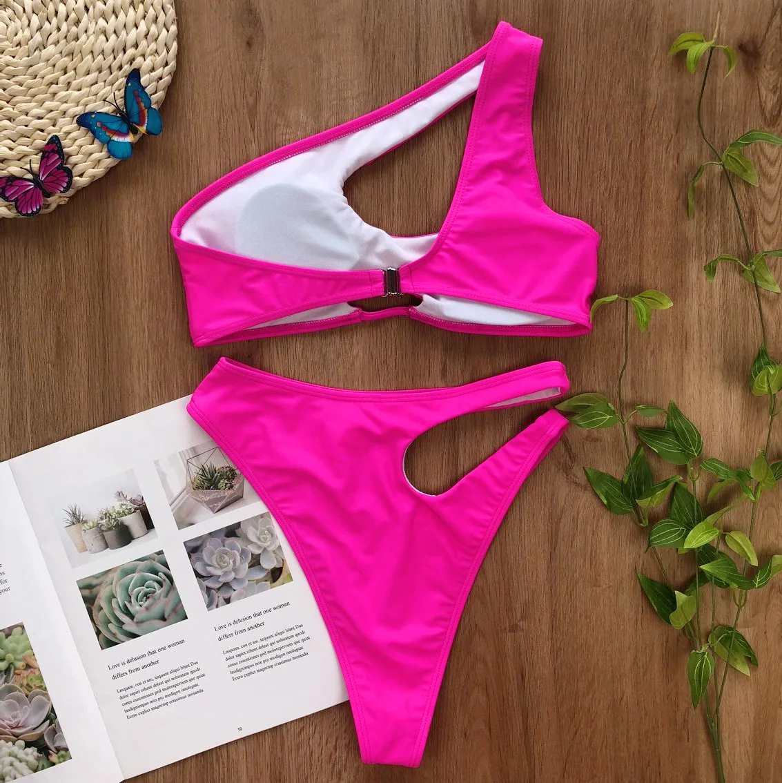 Новинка 2020, сексуальный Одноцветный комплект бикини, женская одежда для плавания, на одно плечо, пуш-ап, купальный костюм, купальник для женщин, пляжная одежда, летний купальник