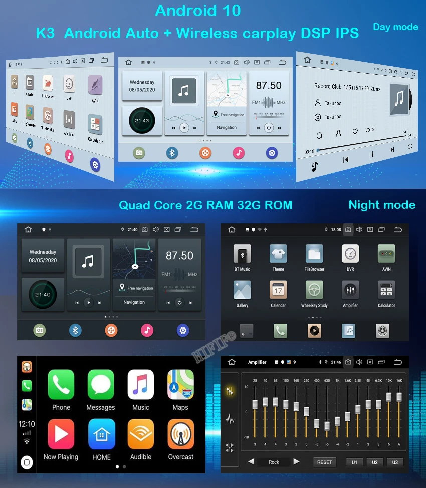 Поддержка эквалайзера 18/48 эквалайзера для музыки, видео-дисплея альбома, названия песен, имени певца, лирической информации от игрока по умолчанию.