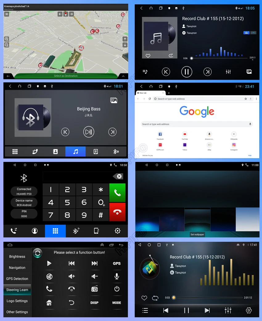 С помощью приложения Easy-Connect, через usb-кабель для зарядки и Bluetooth, вы можете отображать экран телефона android, например, главное меню, фотографии/видео, онлайн-карты navi. Также вы можете управлять телефоном Android на этом устройстве. Поддерживает большинство телефонов Android.