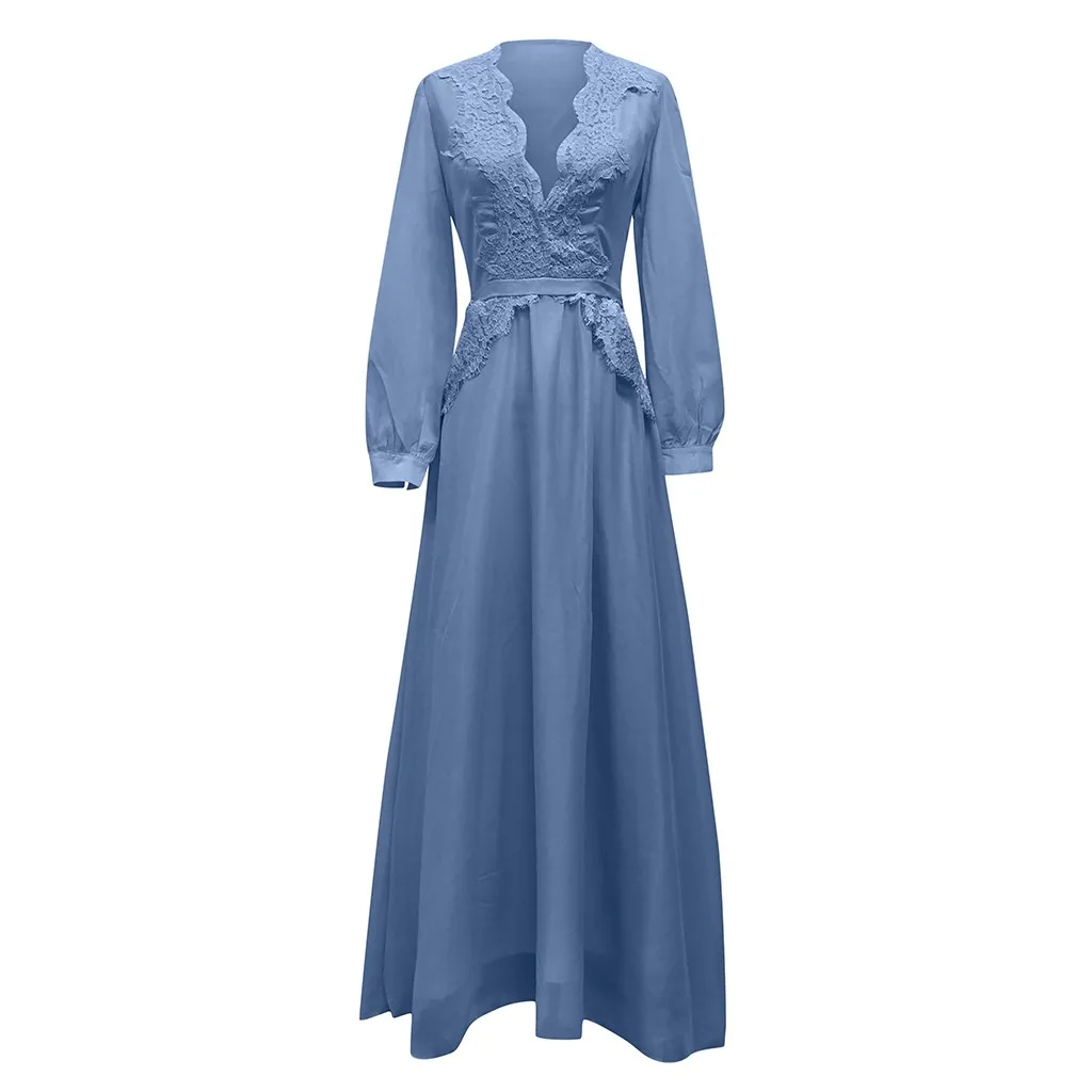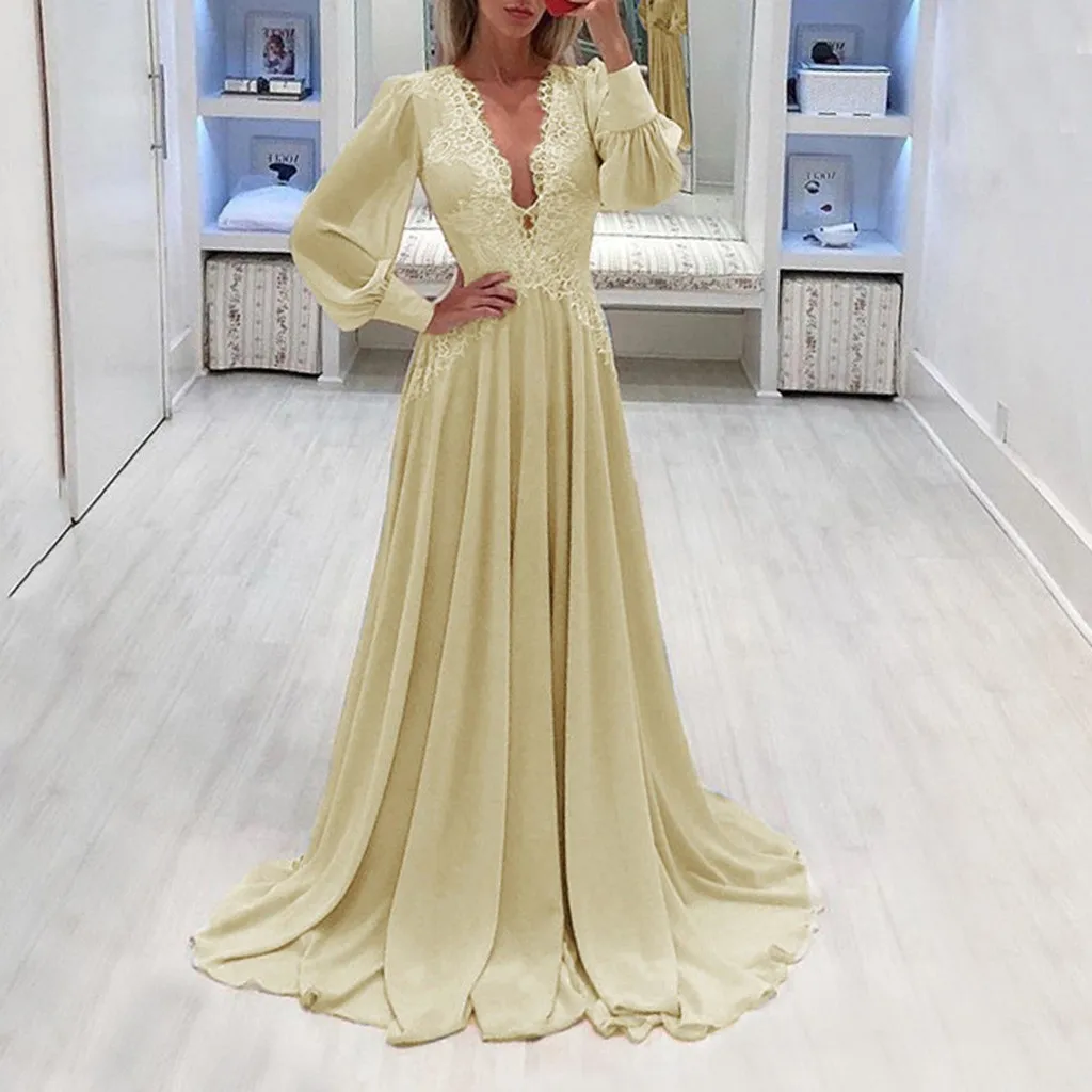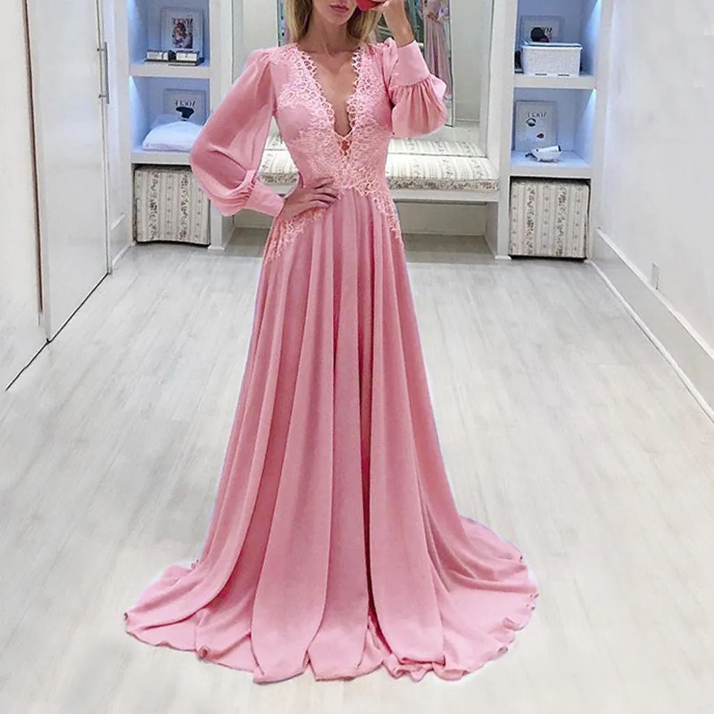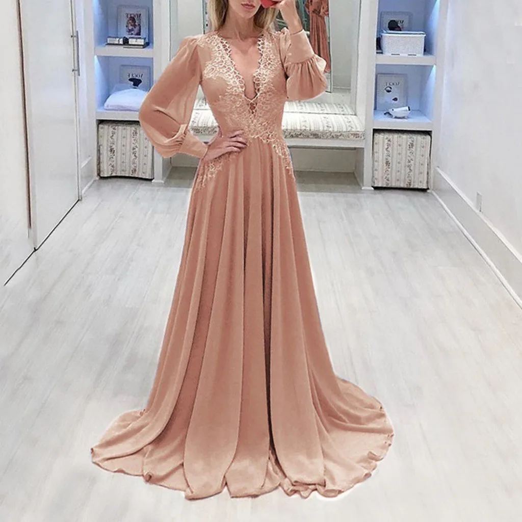 Женское сексуальное однотонное длинное платье с длинным рукавом и v-образным вырезом