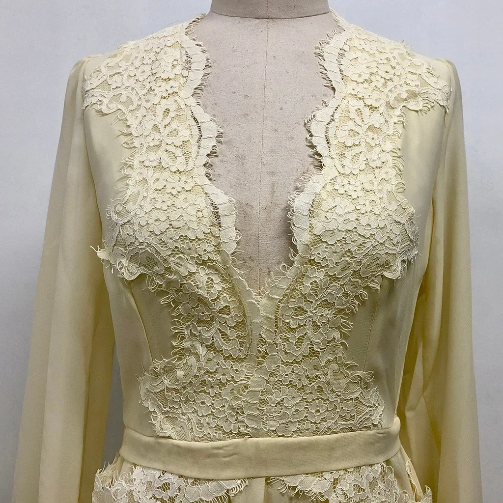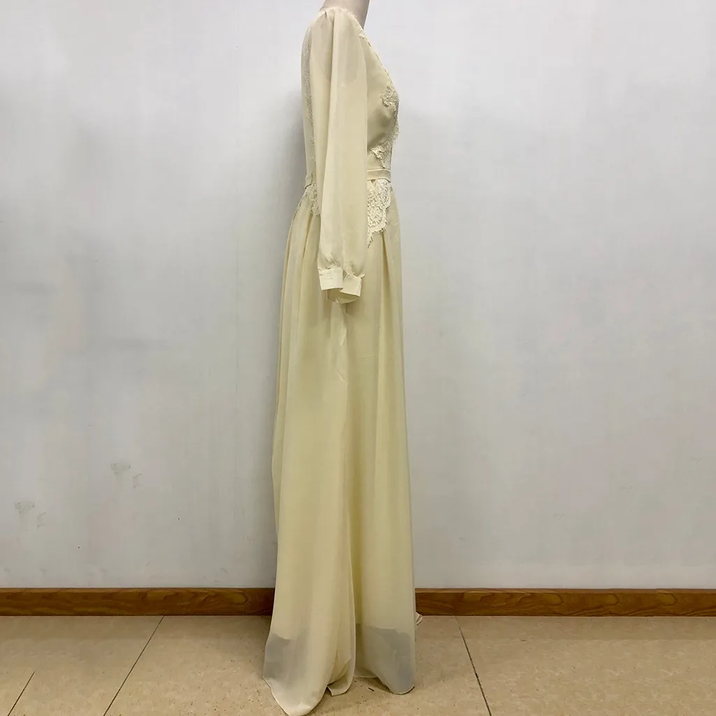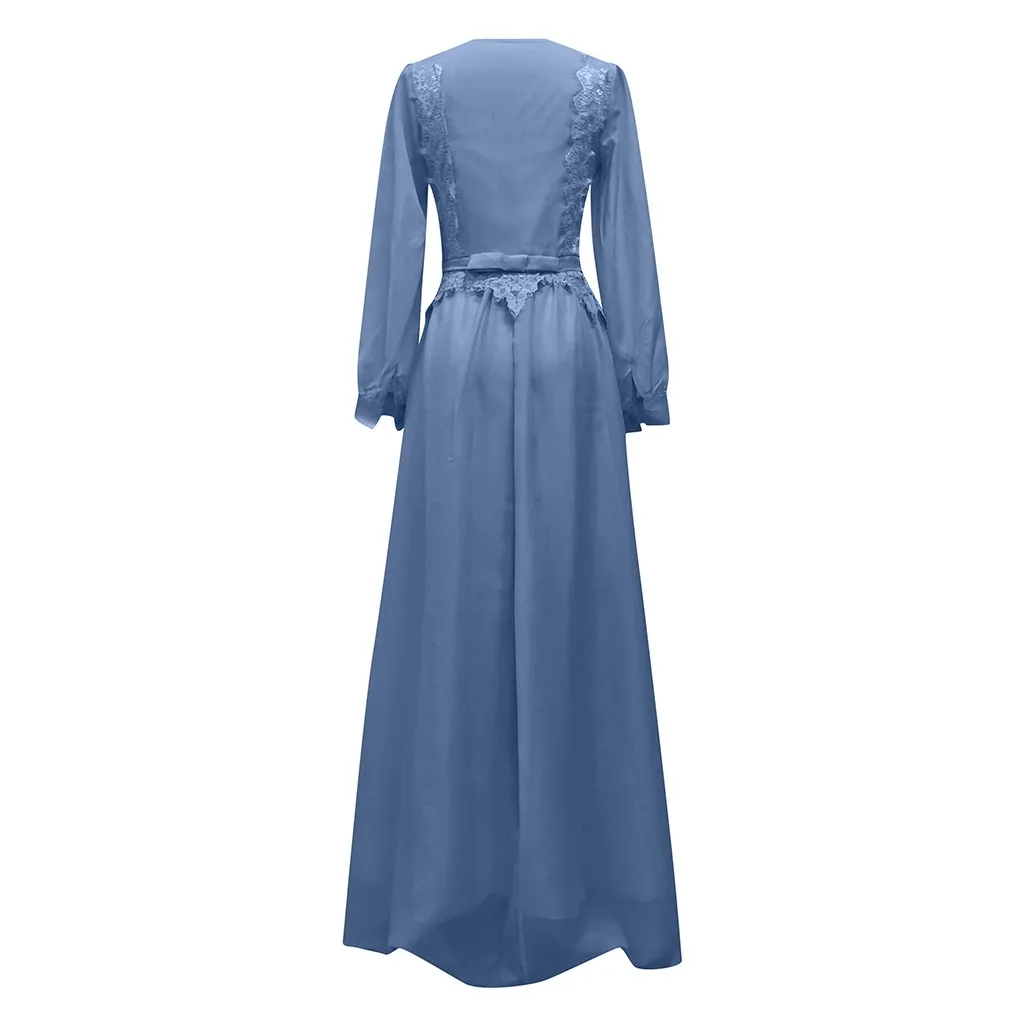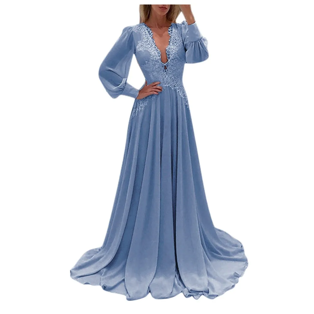 Женское сексуальное однотонное длинное платье с длинным рукавом и v-образным вырезом
