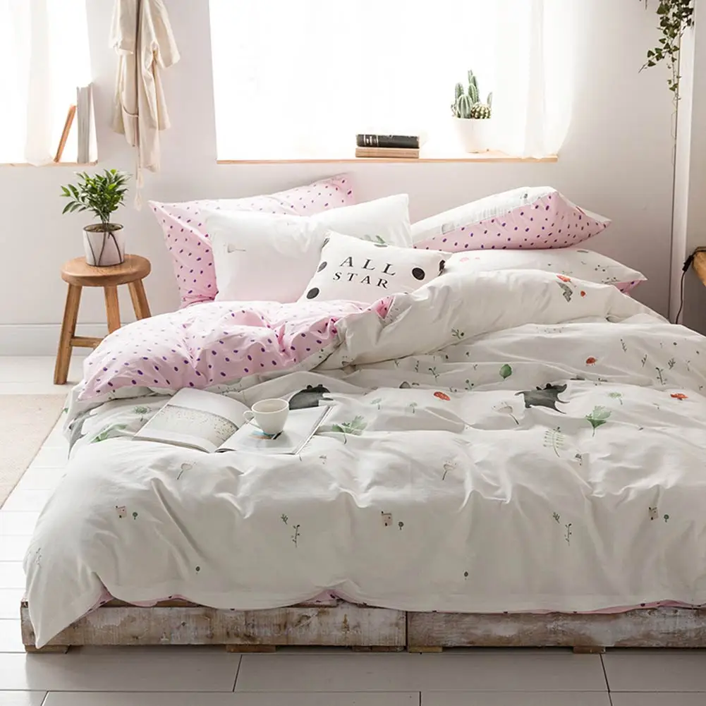 100% хлопок Использование высококачественных материалов для нанесения принта Single150x200 = 1 * Cover150x200 + 1 * Плоский Sheet180x230 + 1 * Pillowcase48x74cm Queen200x230 = 1 * Cover200x230 + 1 * Плоский Sheet230x245 + 2 * Pillowcase48x74cm