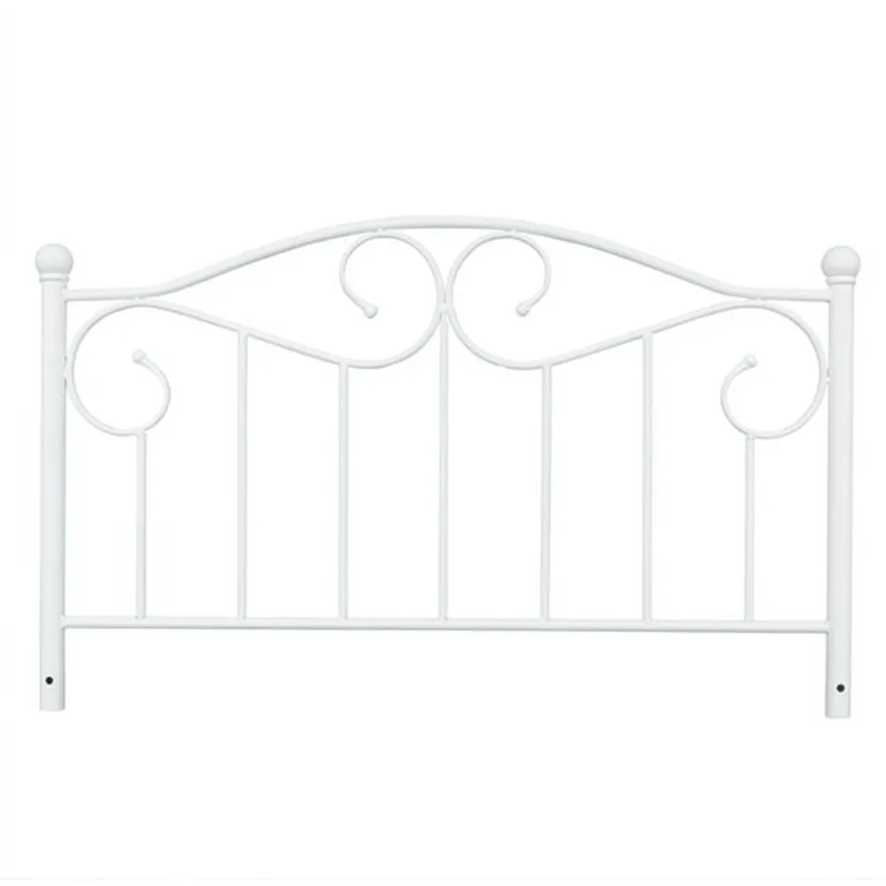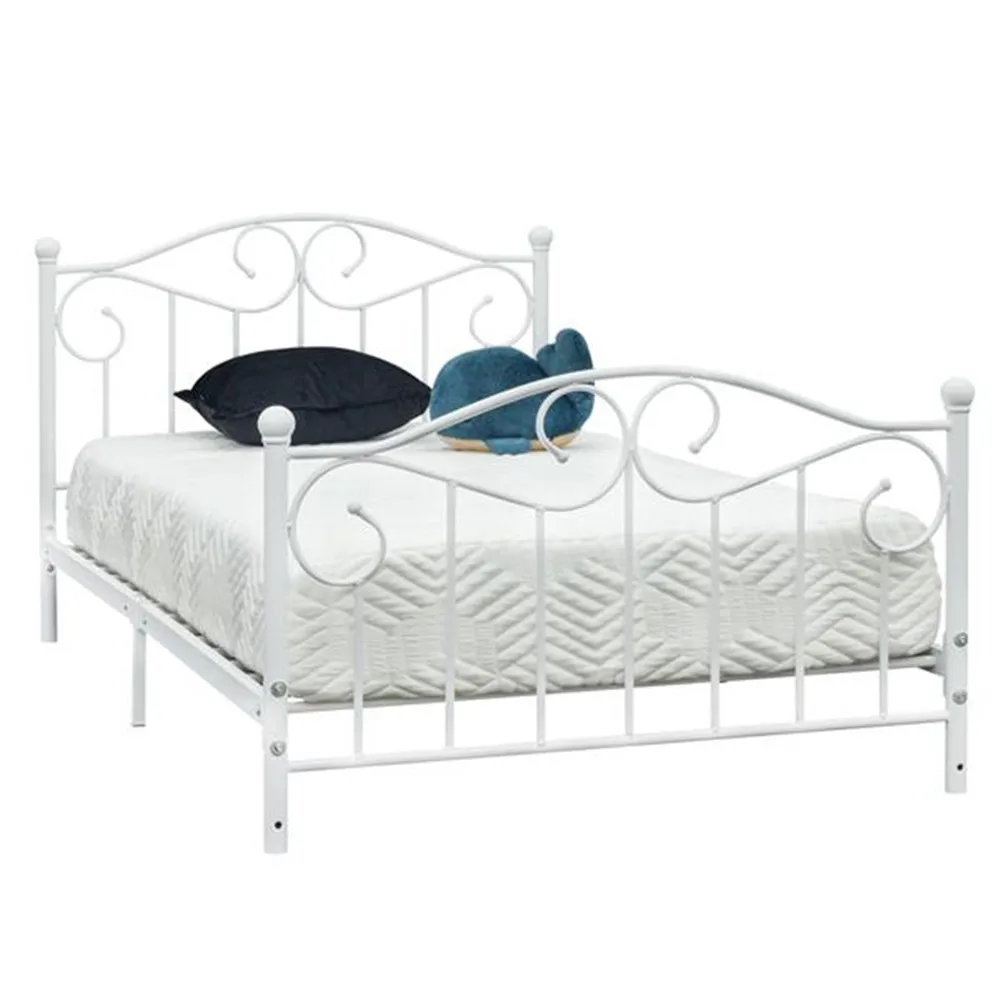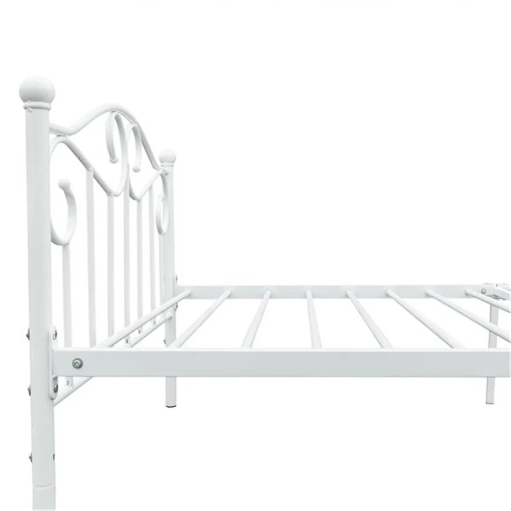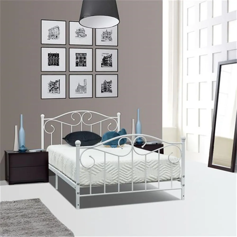 Bonnlo Регулируемая по высоте двойная прикроватная изгиб цветочное украшение железная двухспальная кровать белого цвета