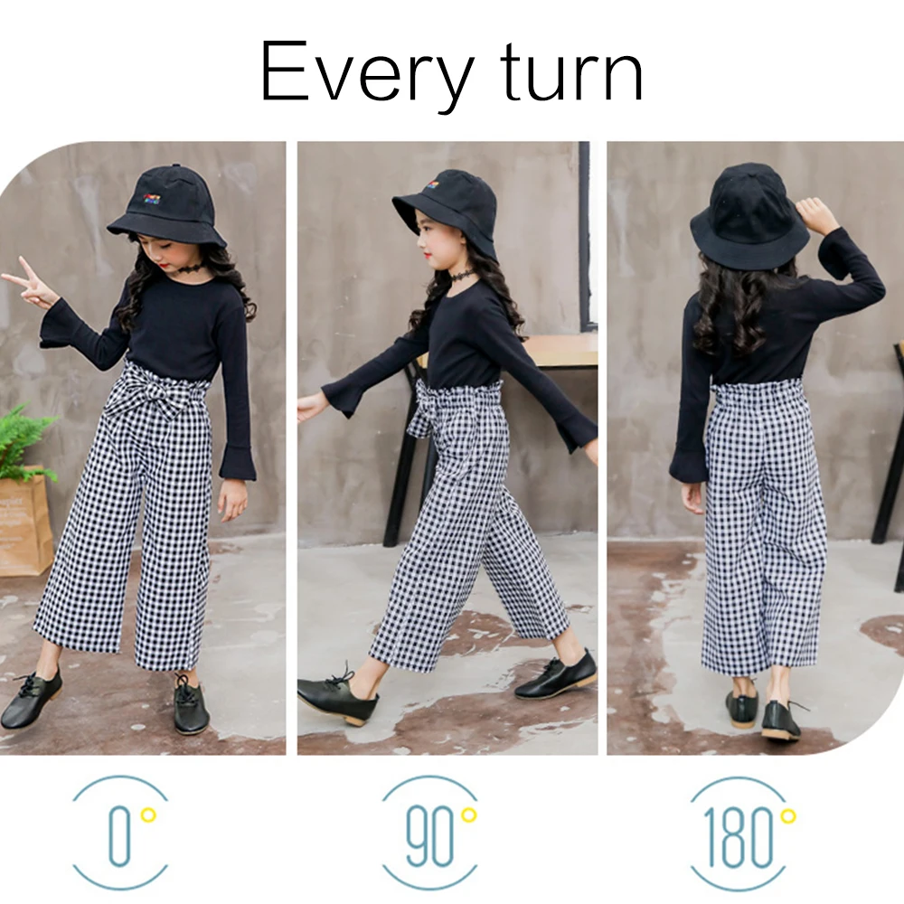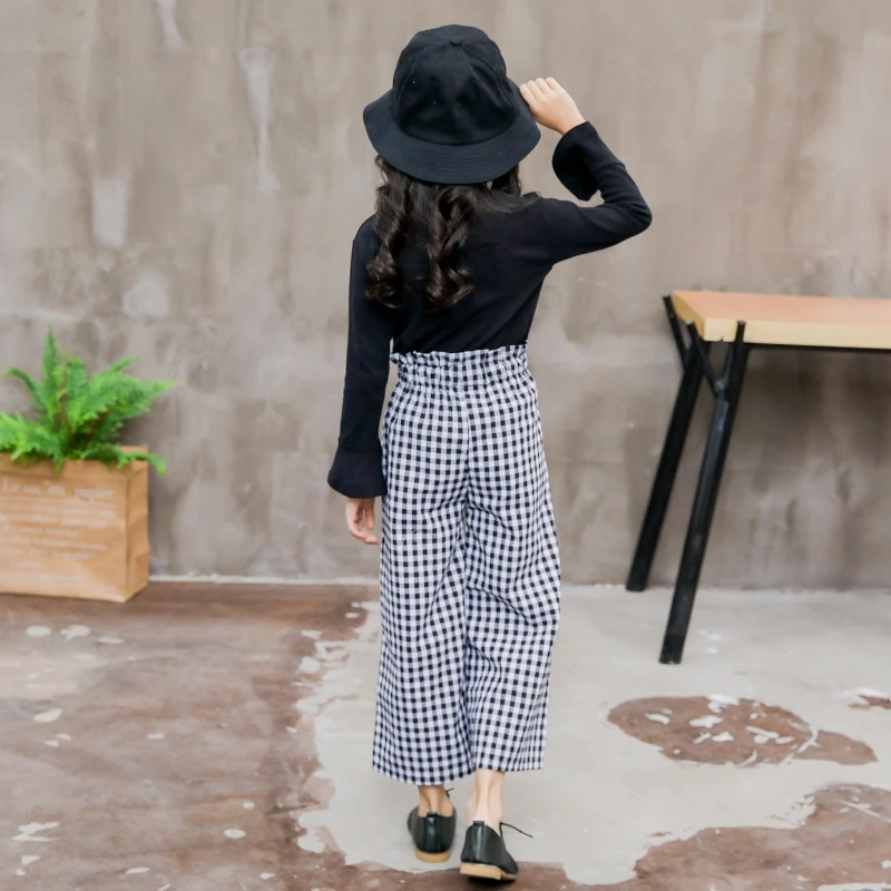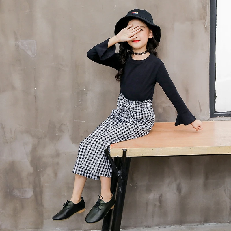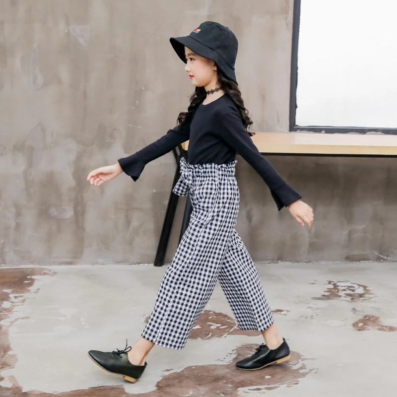 Осенние детские комплекты одежды для девочек 2020, футболки с длинными рукавами + широкие штаны в клетку, Осенняя детская одежда для подростков 7, 8, 10, 12 лет
