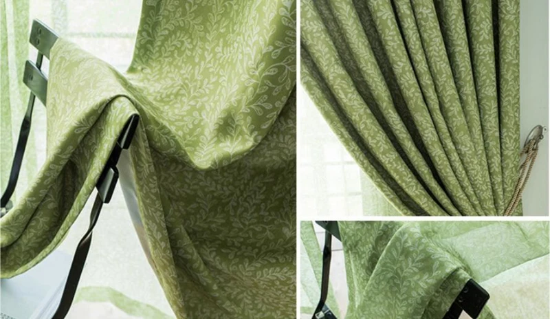 Пасторальные листья, серые занавески для гостиной, зеленые занавески для окна, спальни, затемненная прозрачная ткань, тени на заказ