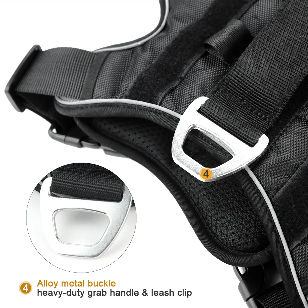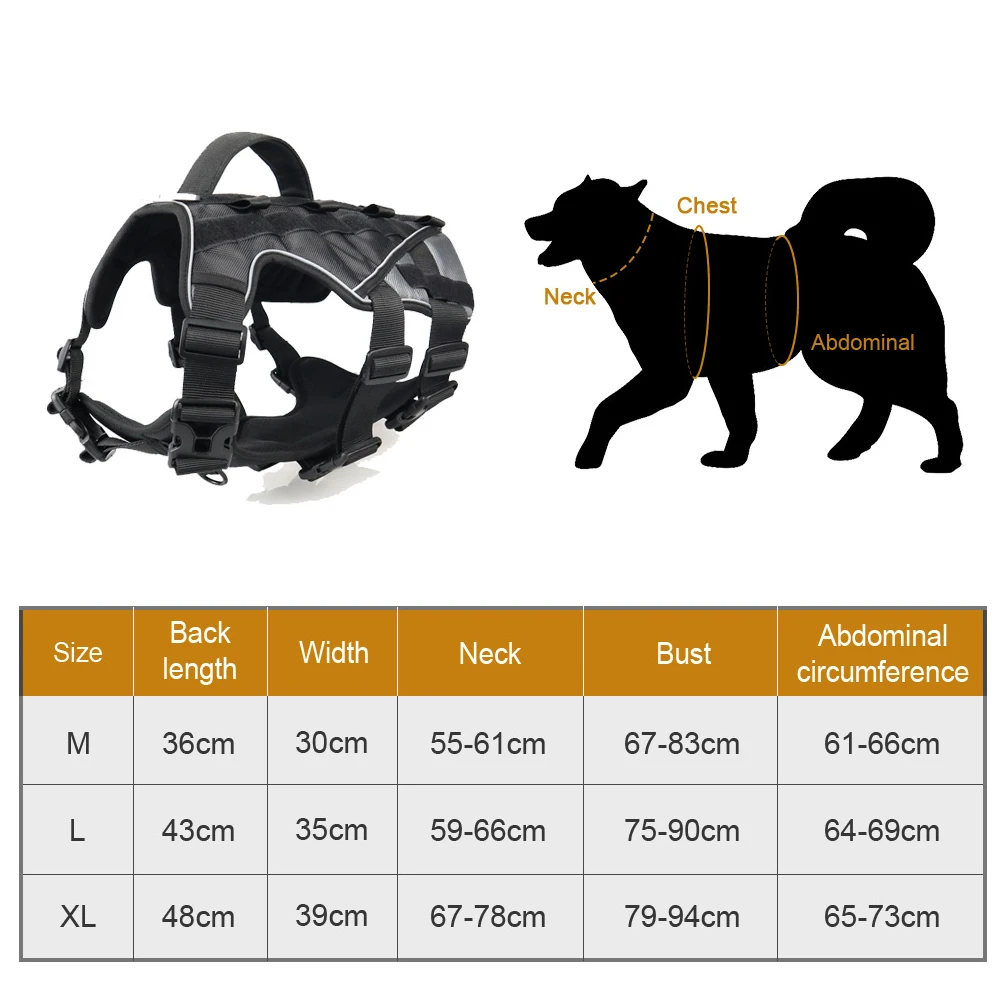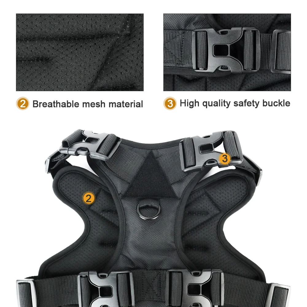 -Этот Тактический нагрудный ремень для собаки изготовлен из высококачественной ткани Оксфорд, устойчивый к царапинам, термостойкий, морозостойкий и слезоточивый. Изготовлен из высококачественной пряжки и светильник из алюминиевого сплава. И выдерживает большую тяговую силу.