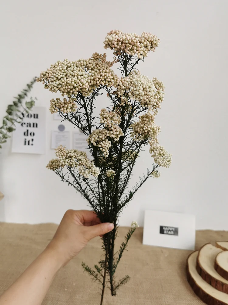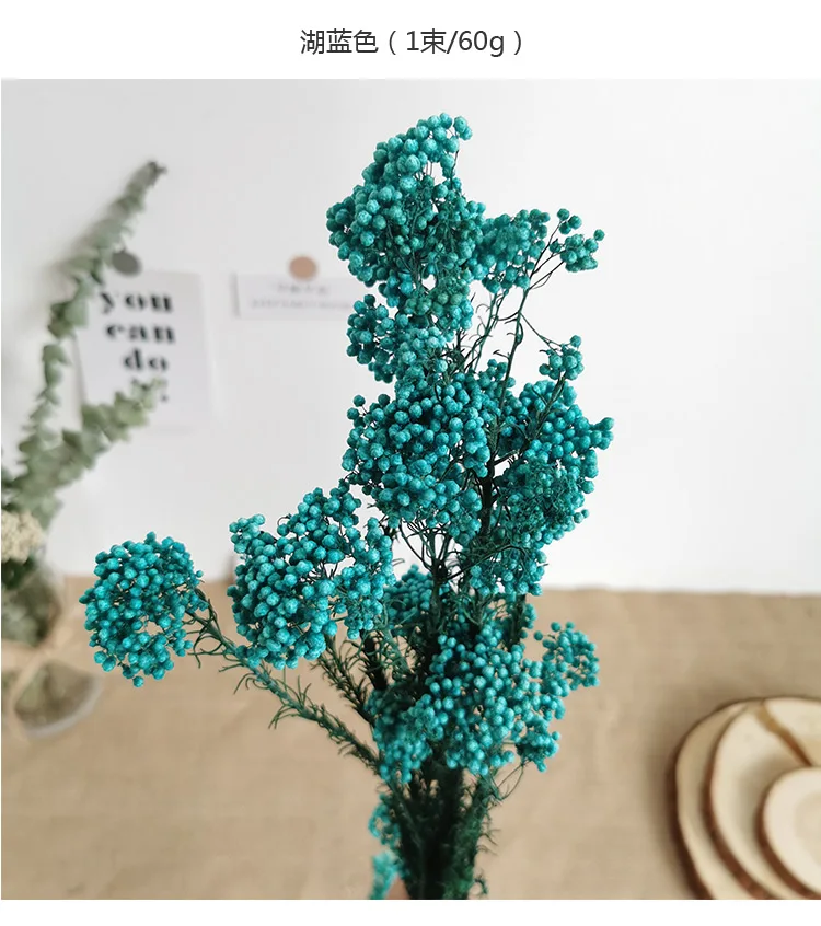 1. Тип: 10 шт смешанных цветов бессмертный цветок проса 2. Материал: Натуральные сушеные растения 3. Цвет: белый, бежевый, розовый, синий, красный 4. Размер М: общая длина около 50-65 см;