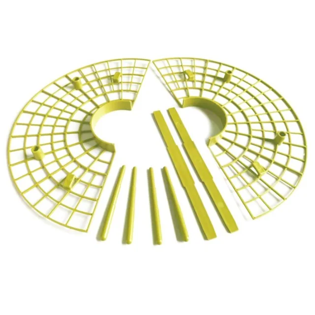 The plastic supports are 30cm in diameter,4 stakes and 2 rails