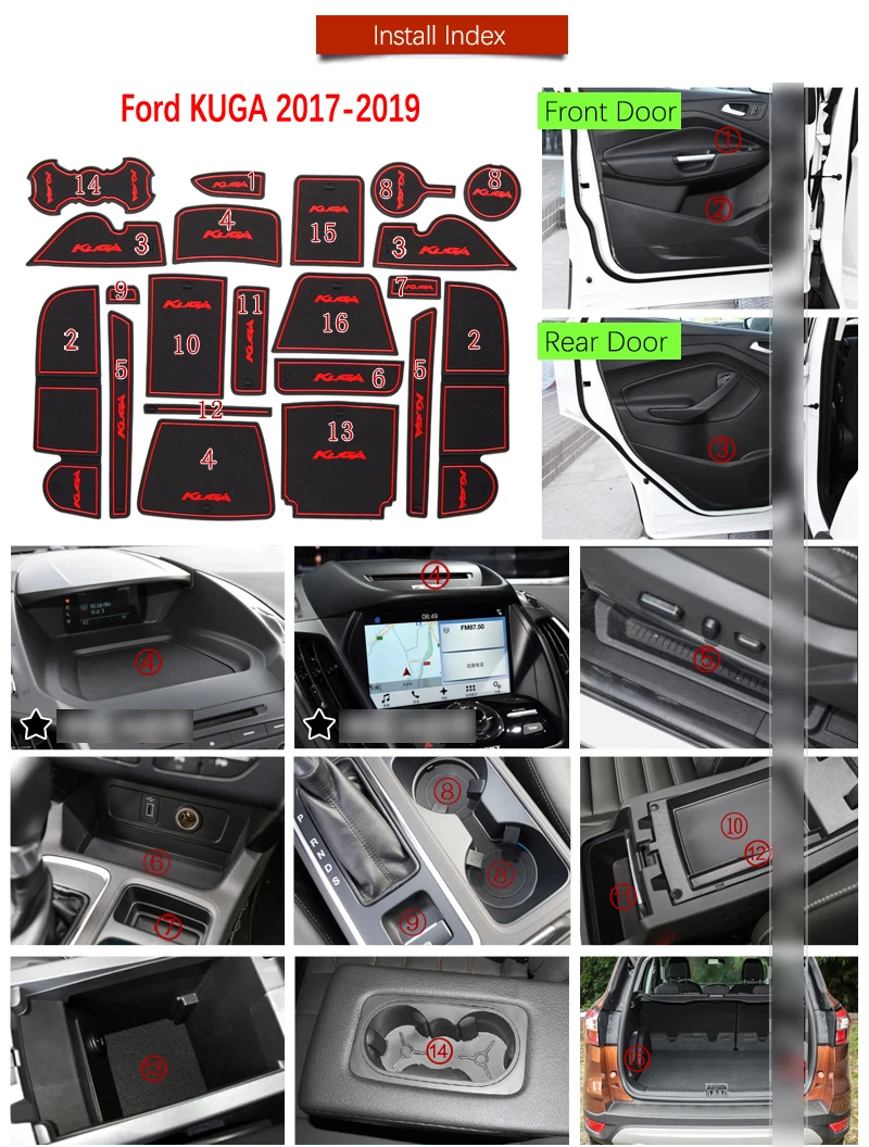 Аксессуары для Ford KUGA 2017 2018 2019 Ford Escape MK2 Facelift C520 Автозапчасти для Ford KUGA 2017 2018 2019 Ford Escape MK2 Facelift C520 Материал: резина особенность: Простая установка, без каких-либо инструментов Примечание: Из-за того, что светильник отличается, возможно, фотографии в описании будут отличаться от реальных цветов. Любые неудобные, искренне надеемся на ваше понимание. Пожалуйста, проверьте циновка чашки размер транспортного средства перед тем, как вы сделаете покупку. Спасибо за понимание. 21 шт./компл.