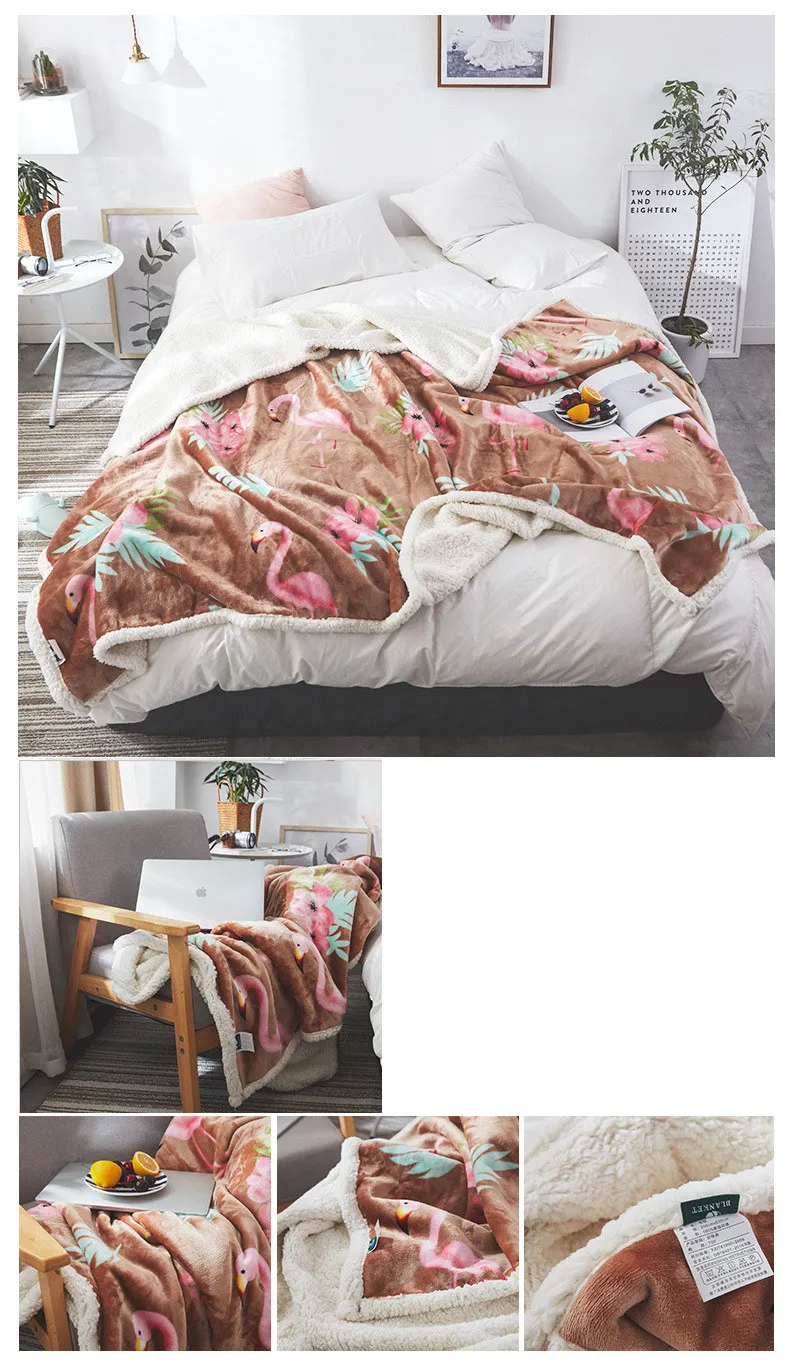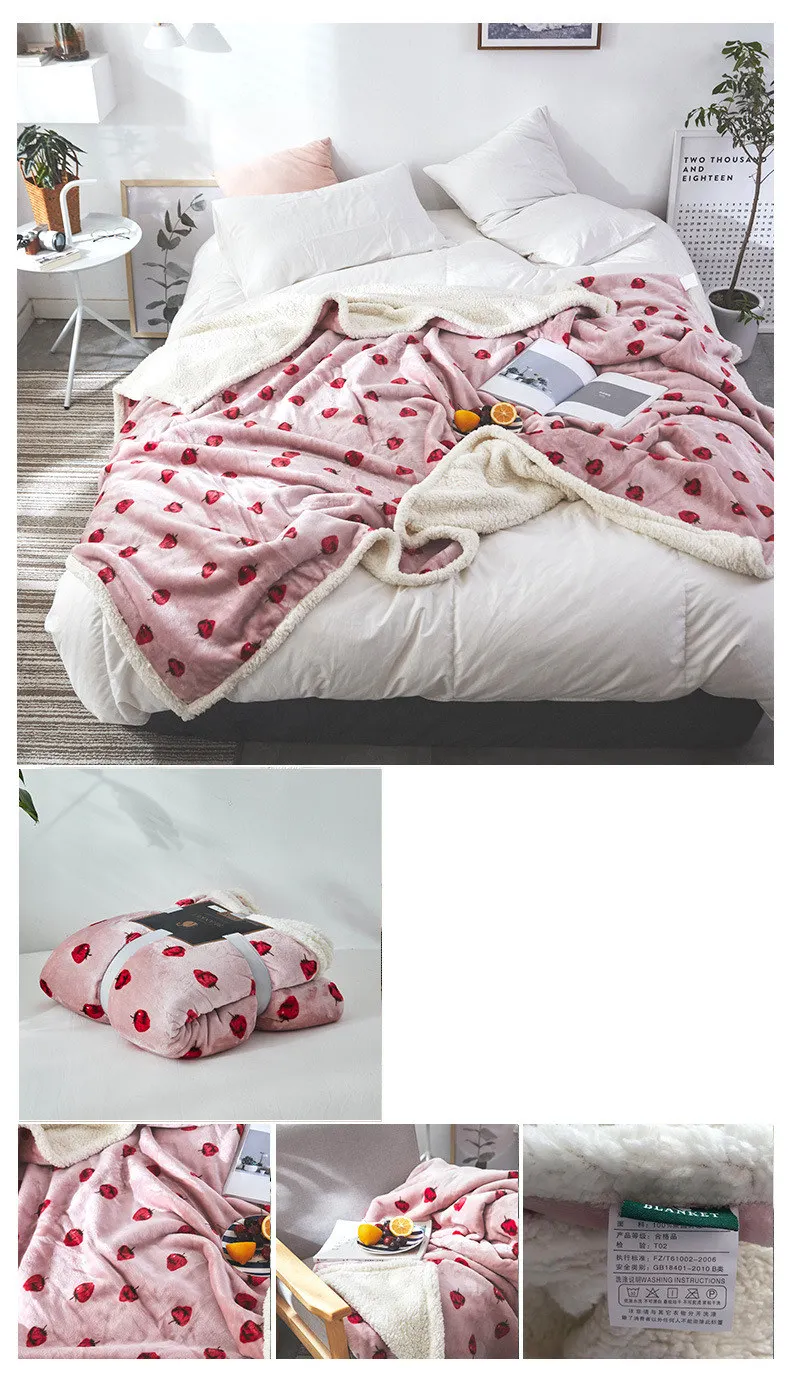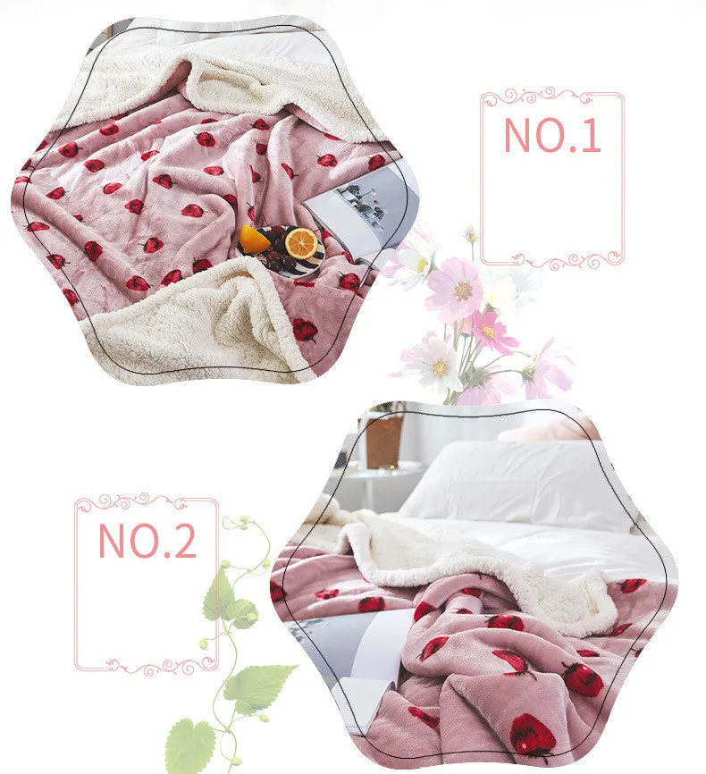 Материал: A. Материал: коралловый флис B. Внутренний слой: овечья шерсть кашемир Толщина, на толстом каблуке Size1 : 100*120 см; Size2 : 150*200 см; Советы по стирке: Машинная стирка в щадящем режиме с холодной водой, сушка в стиральной машине при очень низкой температуре, удерживает несколько машинной стирки и красиво сохнет Использование As: A. Зима; B. Летнее одеяло для кондиционирования воздуха. Особенности: Не линяет; Мягкий и теплый. Рекомендации: A. Это нормально, если на воде есть какой-то плавающий предмет и при первой стирке слегка выцветает. B. Если на полотенце есть небольшие нитки, Вырежьте их ножницами. Это не повлияет на использование полотенец. Примечания: A. Из-за светильник и Экран установка разницы, полученного товара Цвет может быть S светильник ly отличается из-за характеристик монитора компьютера. B. Пожалуйста, учитывайте разницу в размере 5 см из-за различных измерений вручную и специальных материалов.