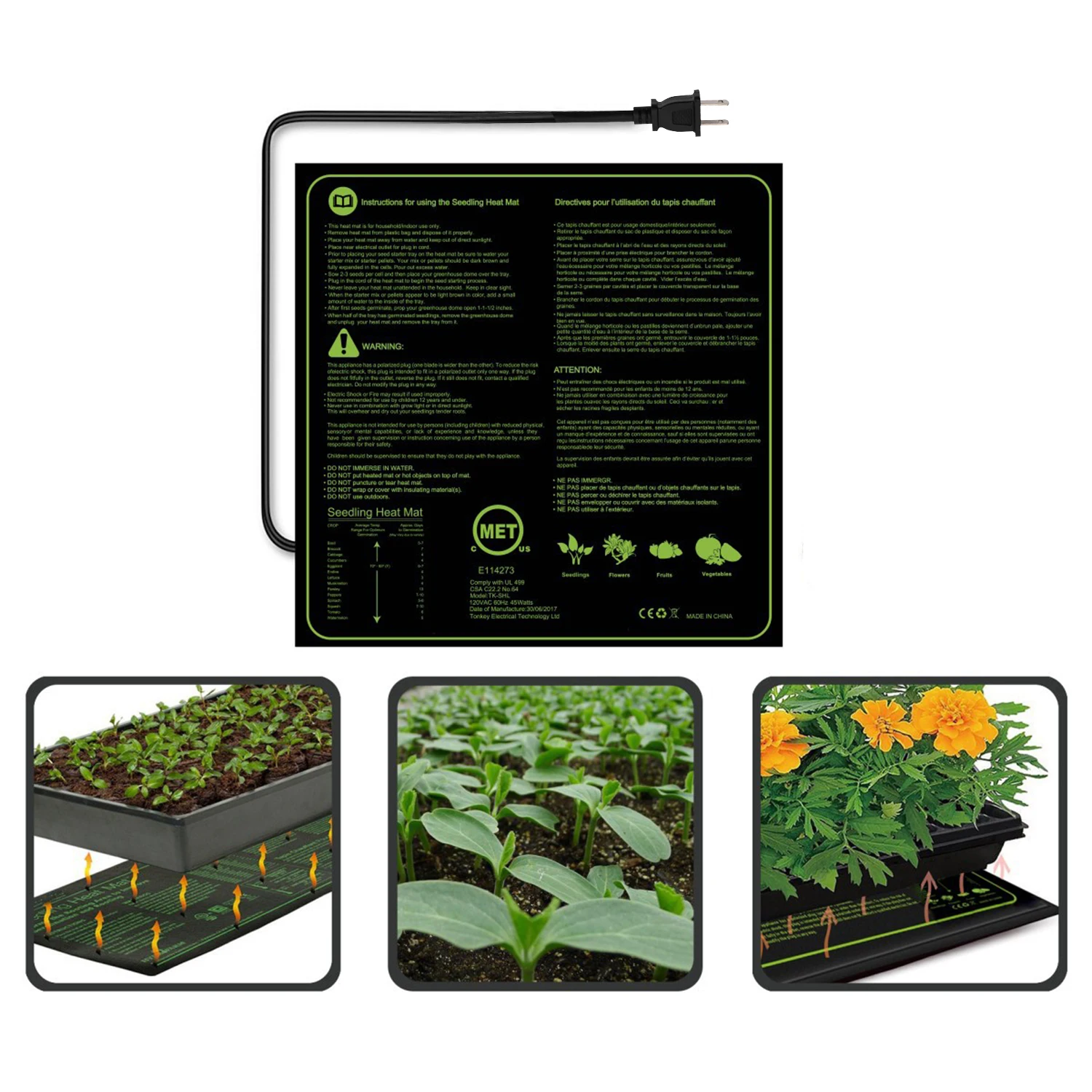 Нагревательный коврик для рассады имеет прочную конструкция, водонепроницаемый и простой в очистке. Термоковрик для рассады для лучшего роста растений и прорастания семян цветов. Одиночная цепь обеспечивает стабильную температуру и увеличивает успех саженцев и черенков. Идеально подходит для сеялки, проращивания, домашнего пивоварения и защиты домашних животных.