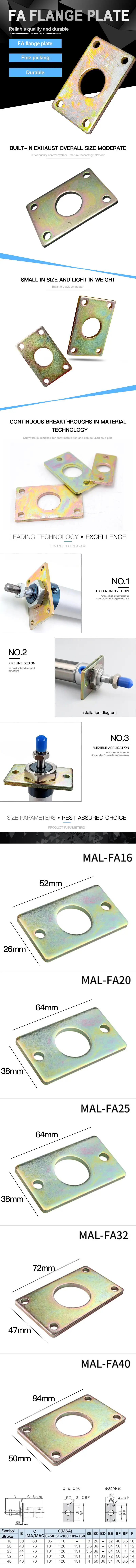 Пневматический мини-цилиндр воздуха частей FA фланец Монтажная пластина для MA/MAL диаметр 16/20/25/32/40 мм мини типа