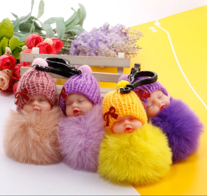Милый Спящий ребенок, плюшевая кукла, детская игрушка, рождественский подарок, меховой шар, цепочка для ключей, подвеска, сумка для девочки, украшения на пасхальную тематику, украшение на день рождения