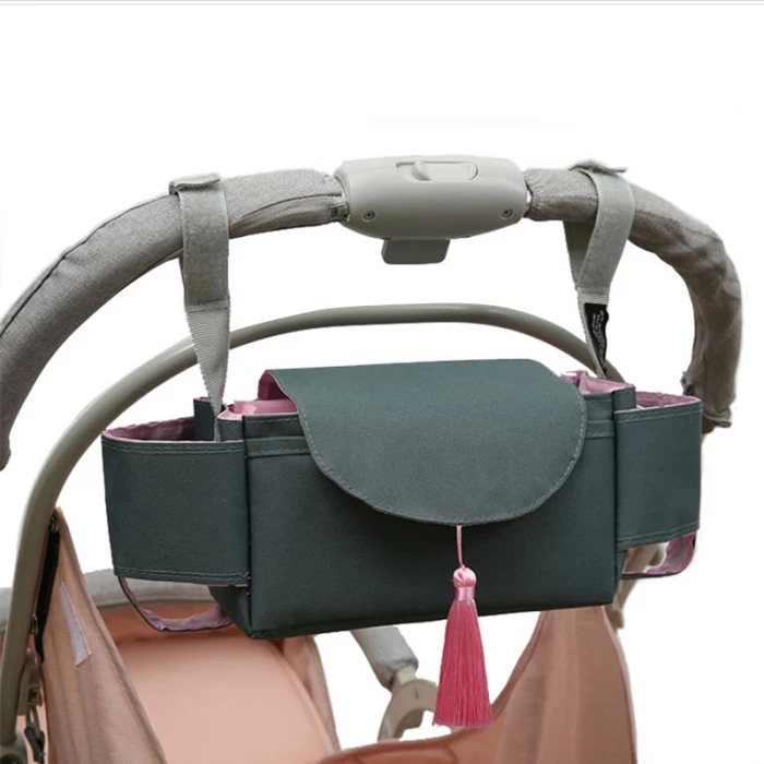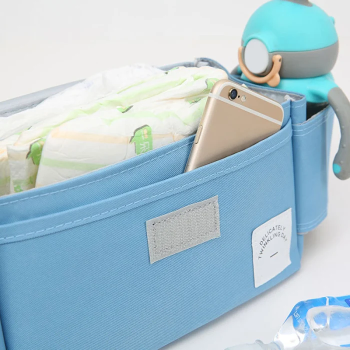 5. Организованный отсек для хранения, который может вместить детские подгузники, детские бутылочки, кошельки и сумочки, телефоны и т. д., подходит для большинства детских тележек