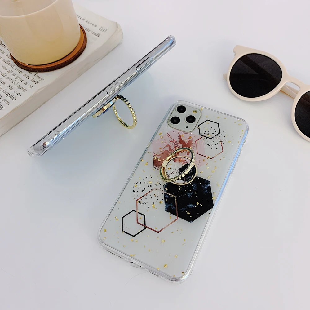 Чехол для телефона iPhone 11 Pro Max XR X XS Max 7 8 6 Plus, мягкий чехол с геометрическим рисунком из эпоксидной смолы, золотистого мрамора