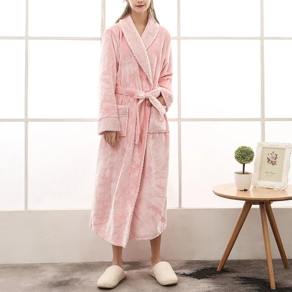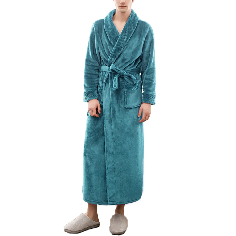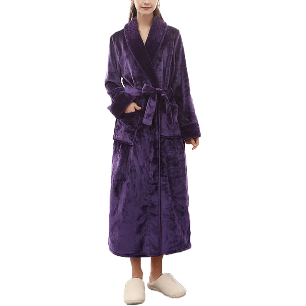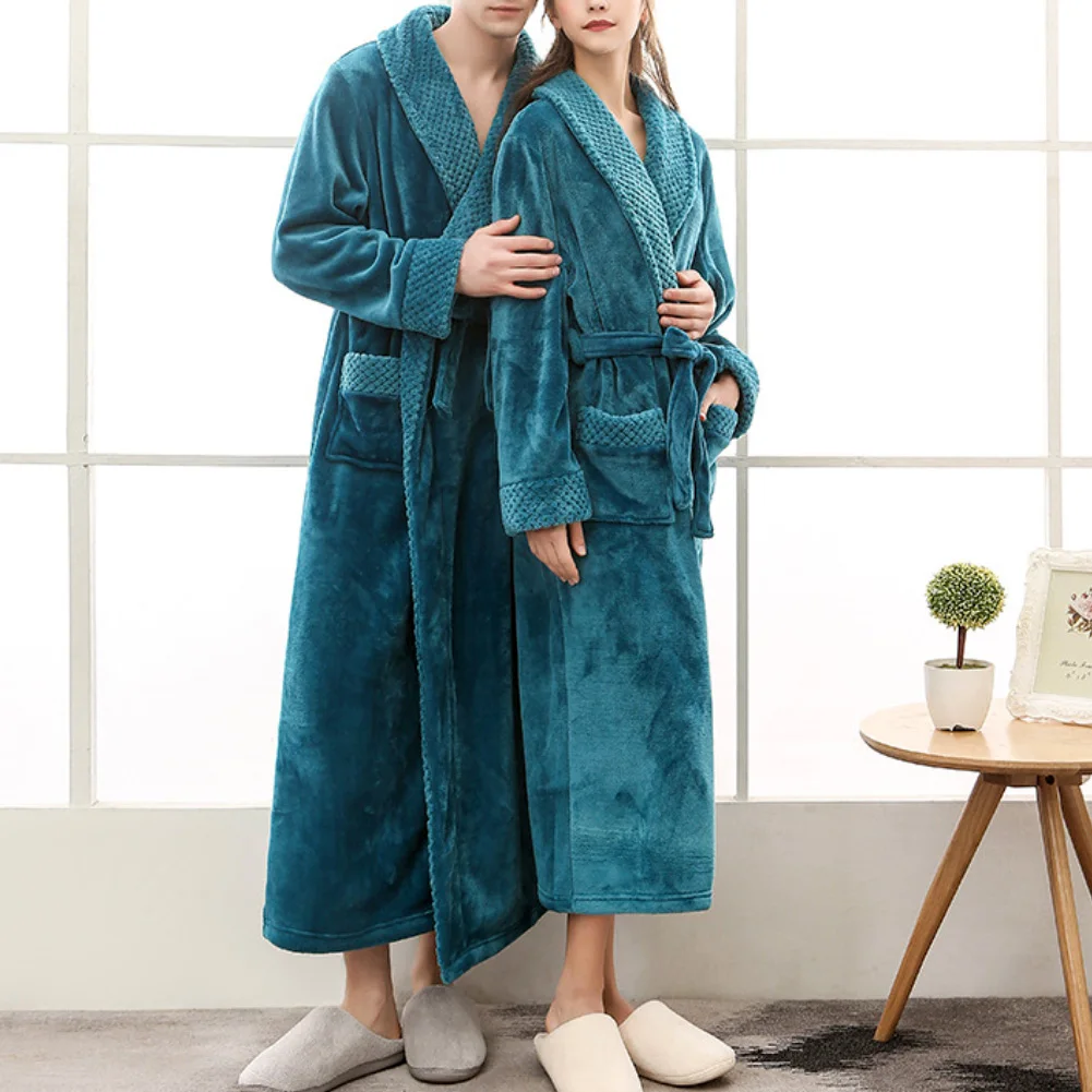 Женский и мужской зимний мягкий однотонный плотный теплый длинный банный халат, домашняя одежда для сна