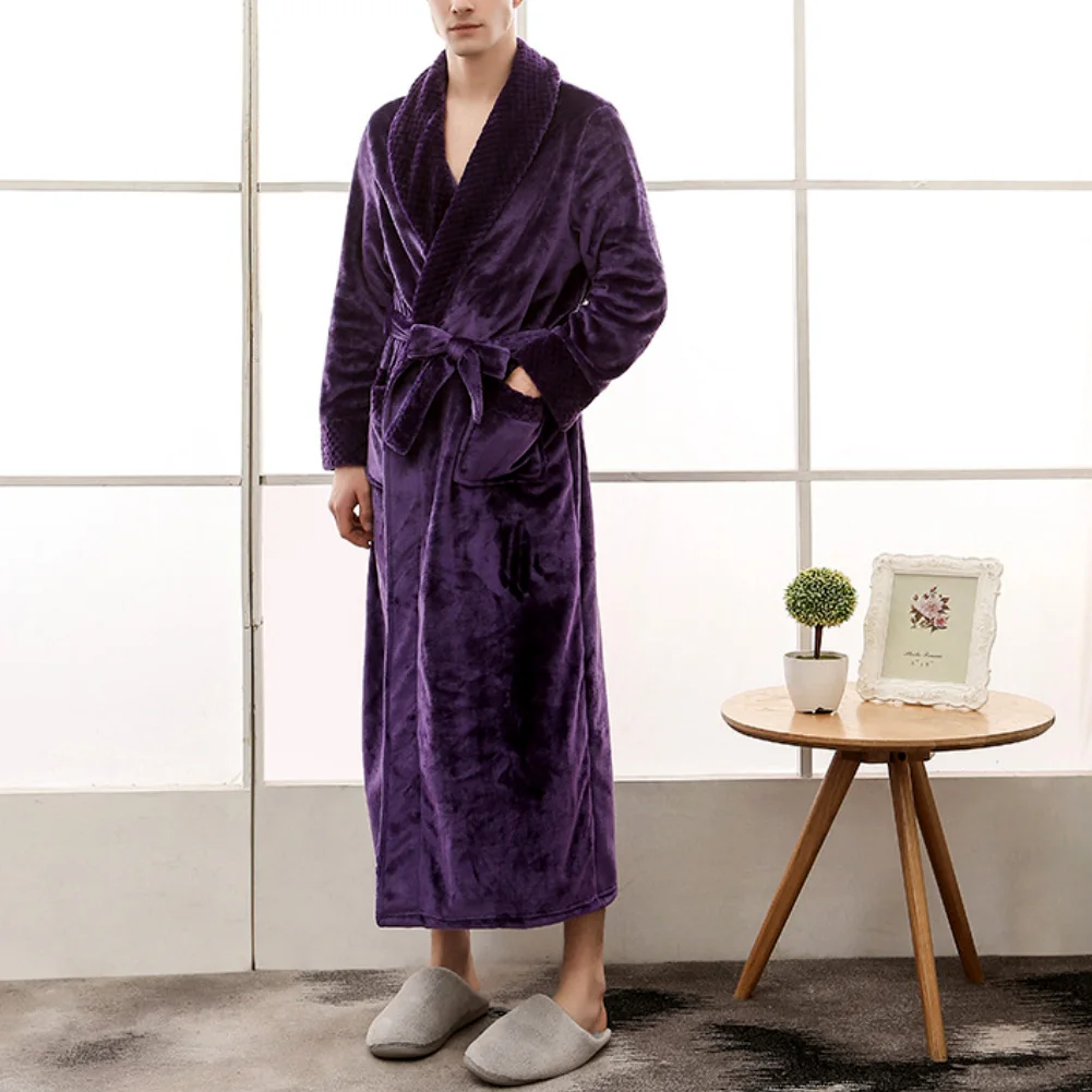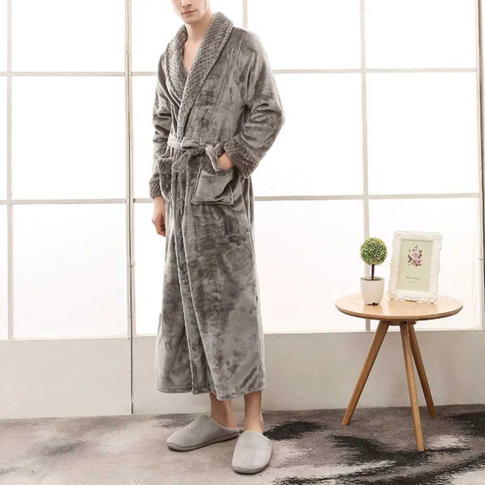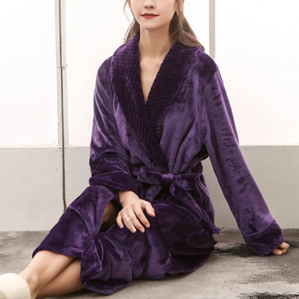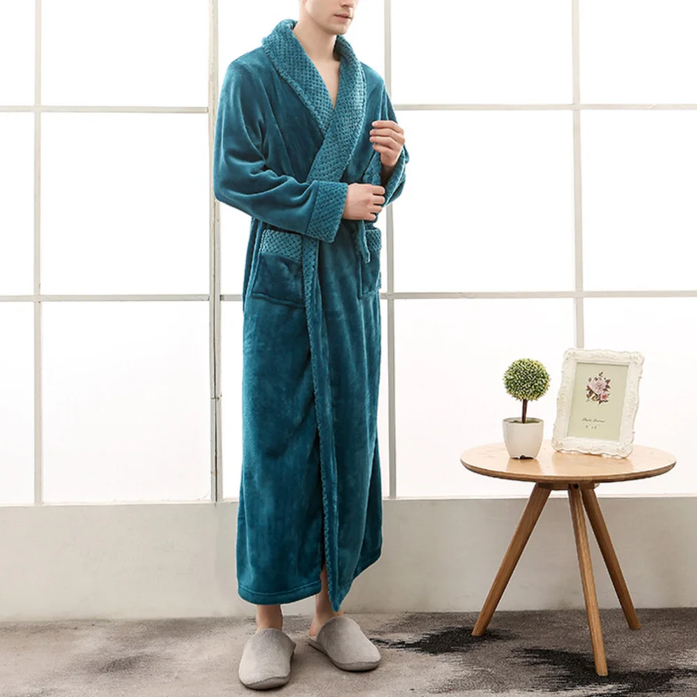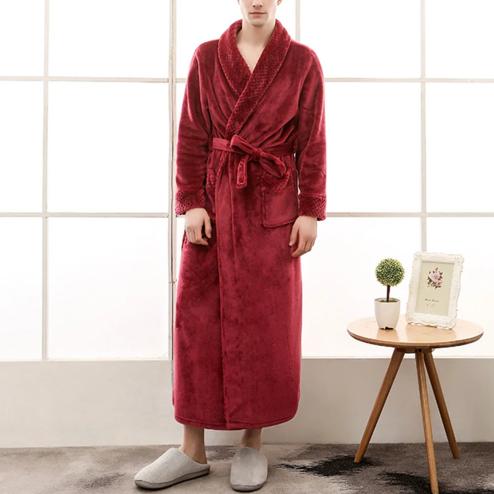 Женский и мужской зимний мягкий однотонный плотный теплый длинный банный халат, домашняя одежда для сна
