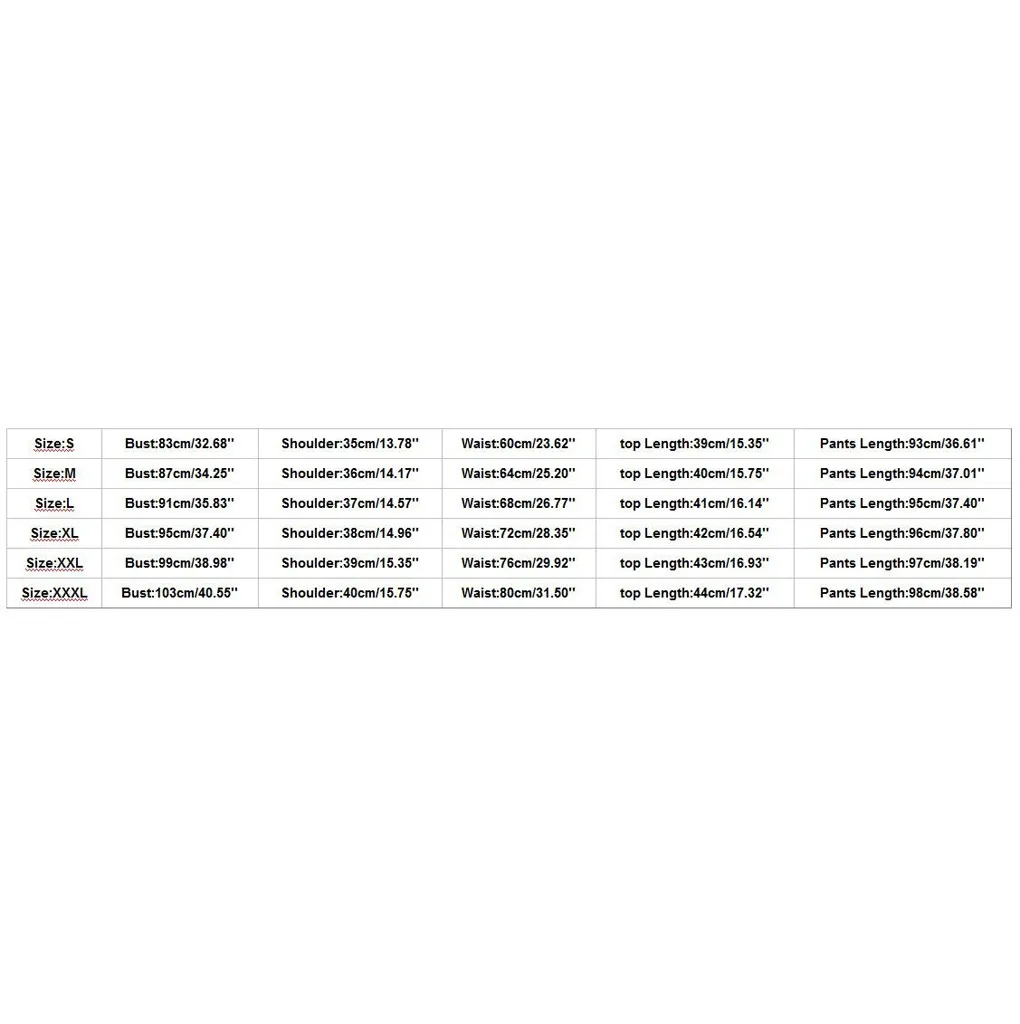 Размер Бюст Плечо Талия Длина верха Длина брюк S 83 см/32,68'' 35 см/13,78'' 60 см/23,62'' 39 см/15,35'' 93 см/36,61'' М 87 см/34,25'' 36 см/14,17'' 64 см/25,20'' 40 см/15,75'' 94 см/37,01'' L 91 см/35,83'' 37 см/14,57'' 68 см/26,77'' 41 см/16,14'' 95 см/37,40'' XL 95 см/37,40'' 38 см/14,96'' 72 см/28,35'' 42 см/16,54'' 96 см/37,80'' XXL 99 см/38,98'' 39 см/15,35'' 76 см/29,92'' 43 см/16,93'' 97 см/38,19'' XХХL 103 см/40,55'' 40 см/15,75'' 80 см/31,50'' 44 см/17,32'' 98 см/38,58''