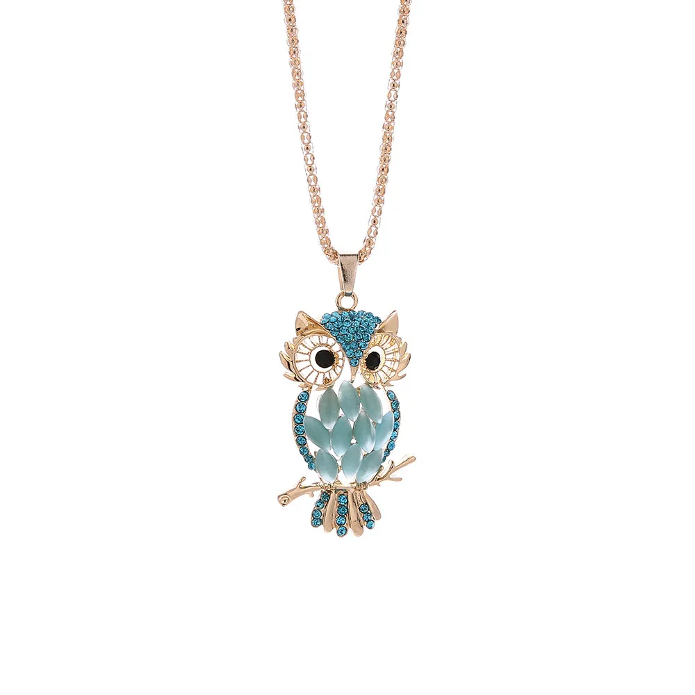 Модное женское ожерелье-свитер с подвеской в виде хрустальной совы