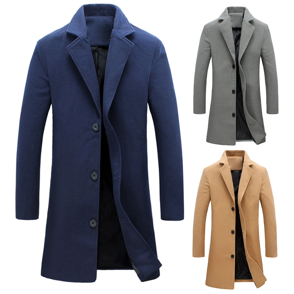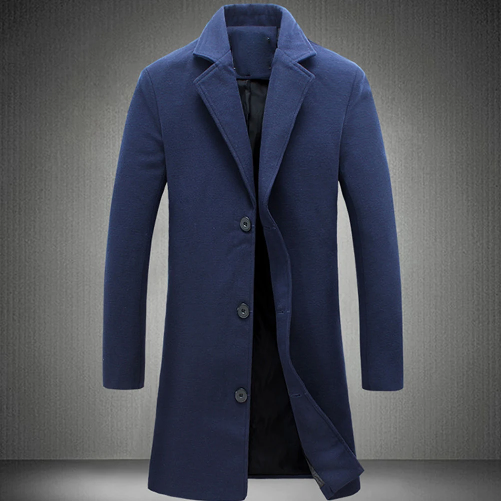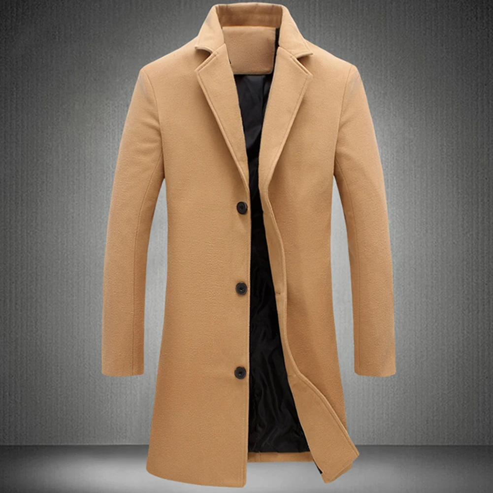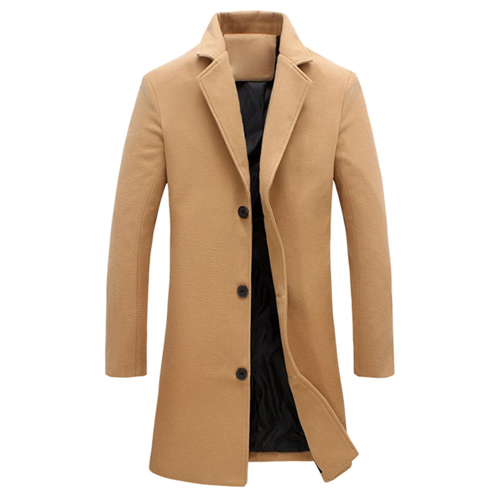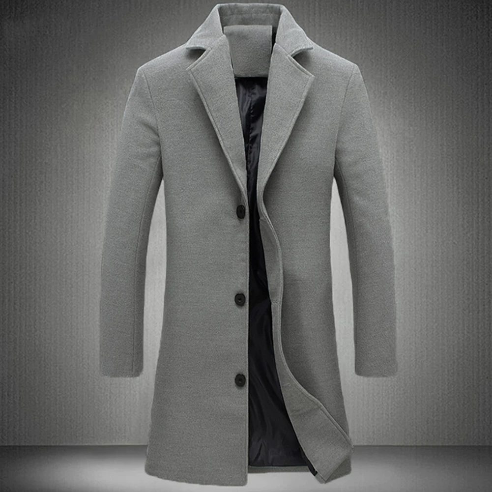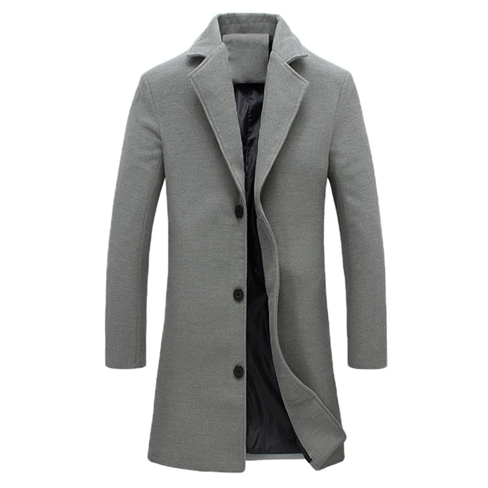 Мужское зимнее пальто с отложным воротником из шерсти и смески однобортное с карманами размера плюс плащ-манто черный серый homme пальто мужкое