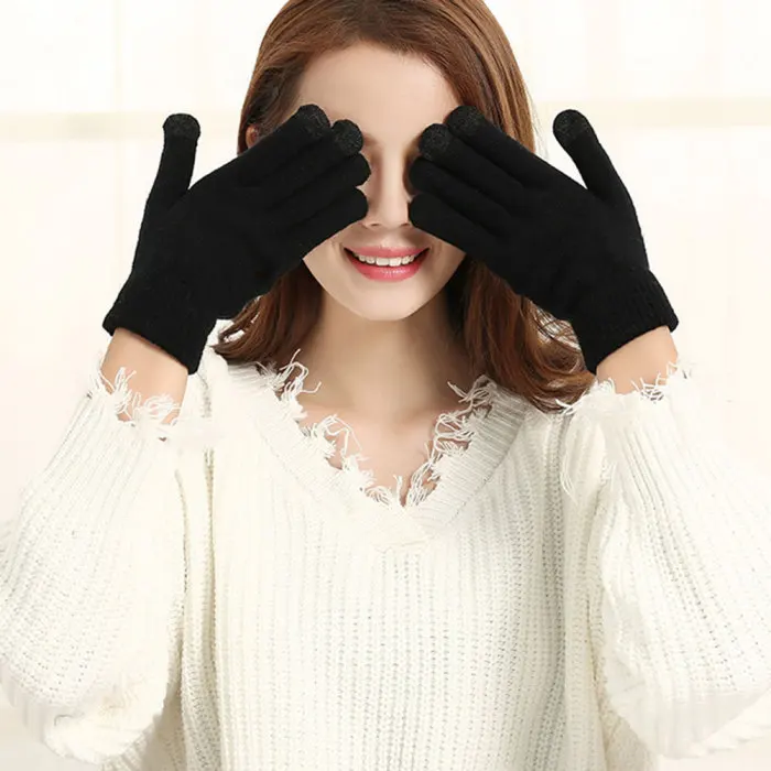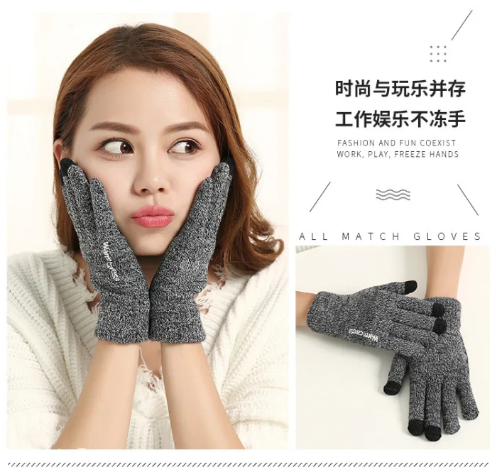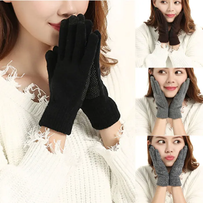 Женские зимние теплые вязаные перчатки с сенсорным экраном Противоскользящие силиконовые гелевые перчатки feat889