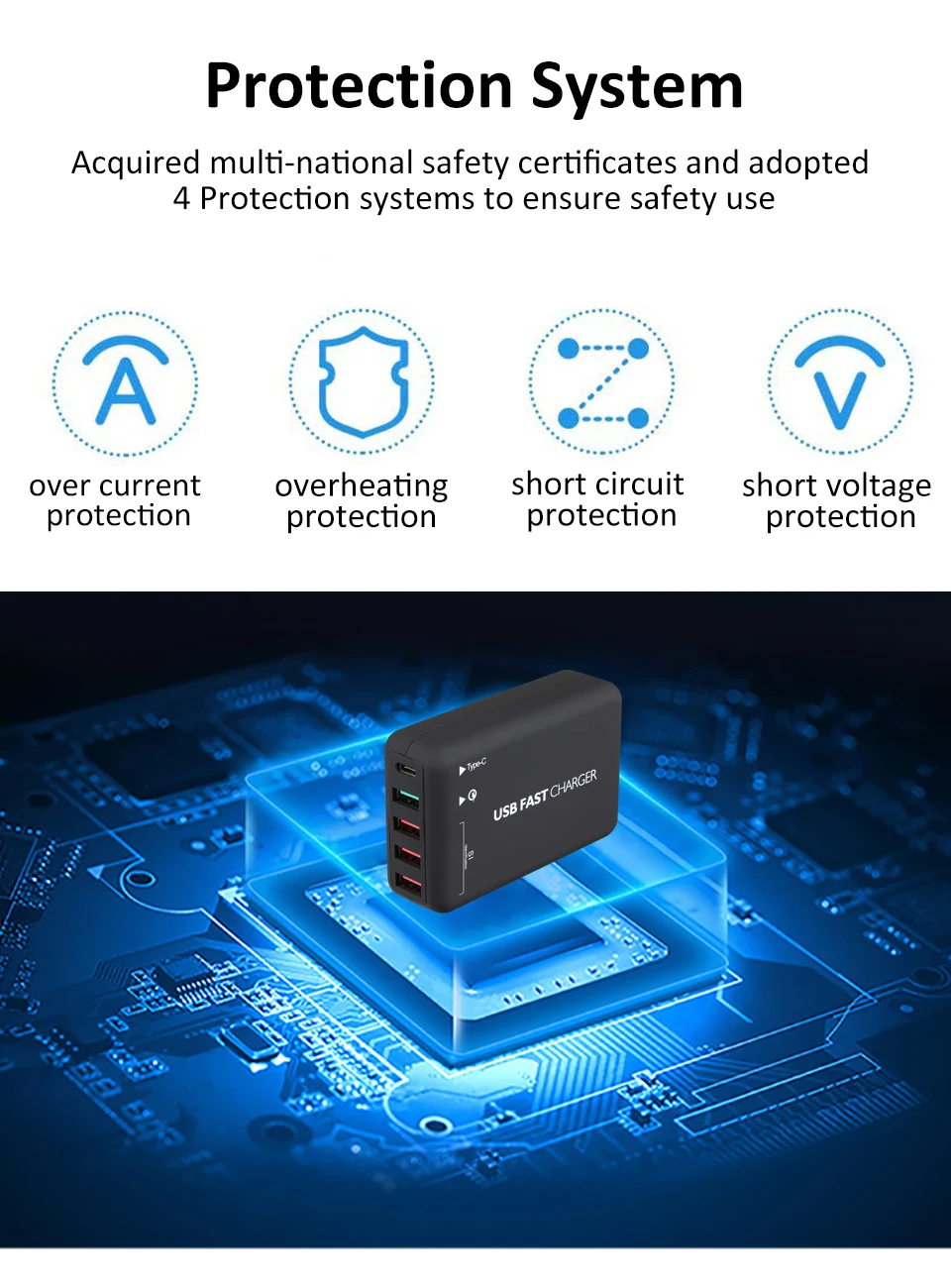 Материал: АБС-пластик Цвет: черный Usb-порт s: 5 портов s (1 QC + 3 порта для смарт-зарядки + 1 Type C) Автоматическая идентификация зарядки: да Быстрая зарядка Qualcomm 3,0: Да Вход: 100 В ~ 240 В переменного тока 50 ~ 60 Гц Общая мощность: 60 вт (макс.) Защита от перегрузки на выходе: 90% ~ 105% Выходная пульсация: 100% ~ 150% Выходное напряжение постоянного тока Регулируемый диапазон: ± 10% Рабочая температура: -20 ℃ ~ 50 ℃ Метод охлаждения: безопасный алюминиевый лист охлаждения Вилка: США, ЕС