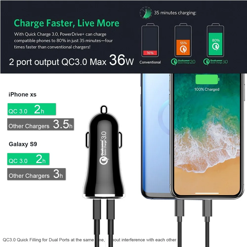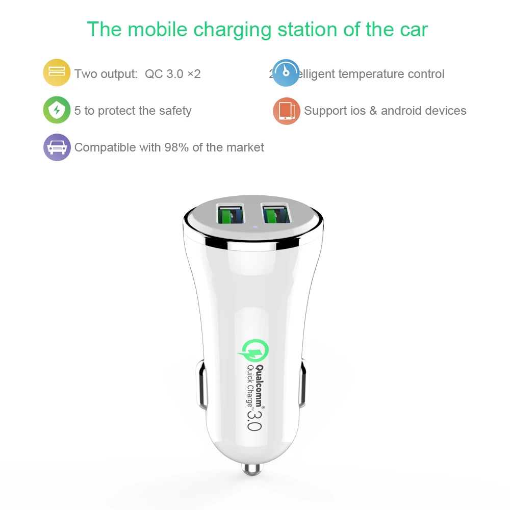 Посылка включает в себя: автомобильное зарядное устройство с двумя портами-1 шт.