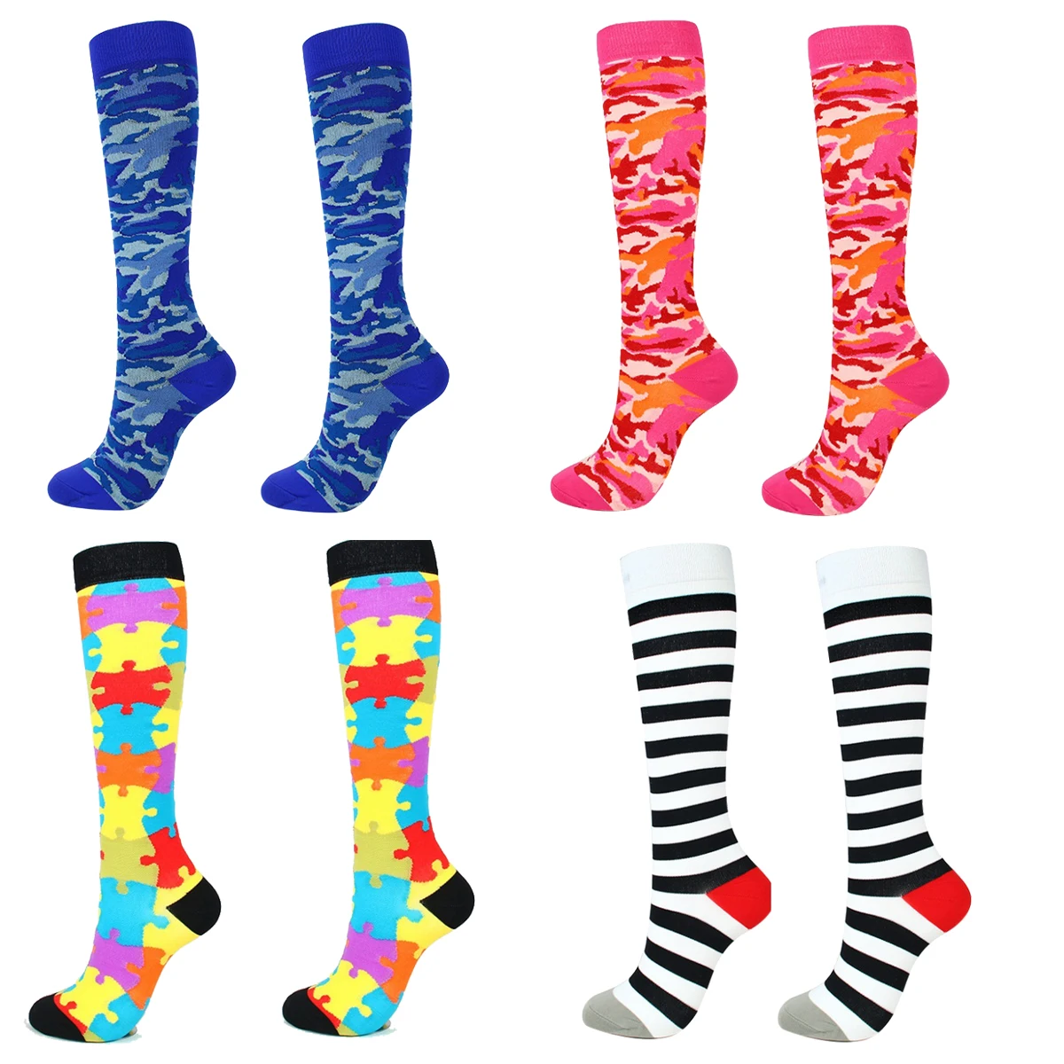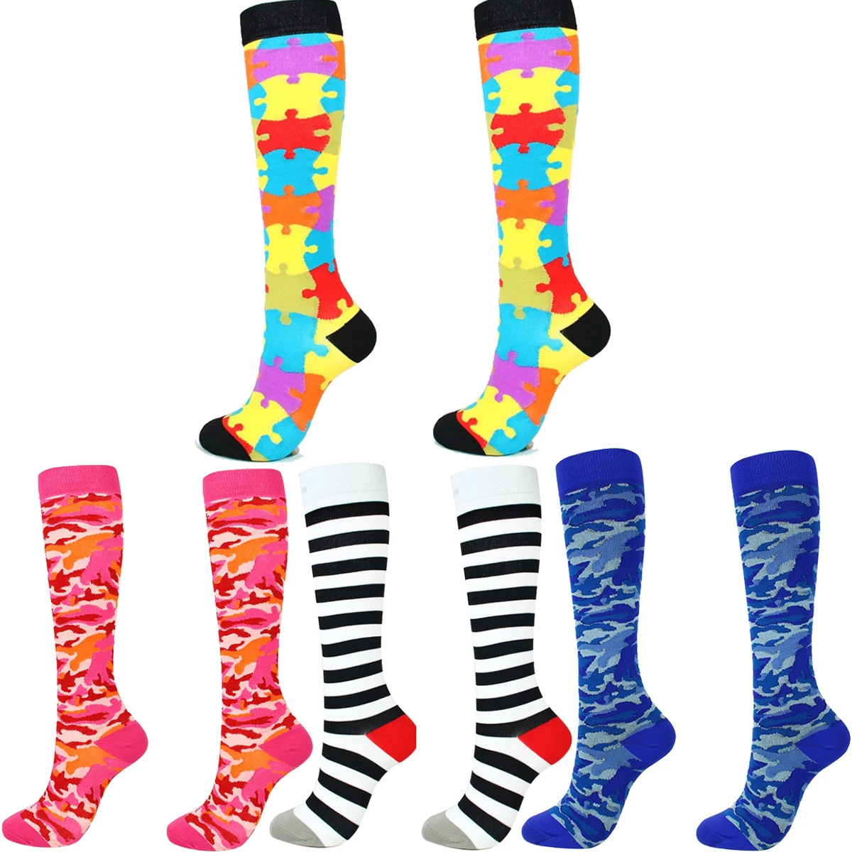 Компрессионные носки для женщин и мужчин, модные эластичные чулки на коленях.