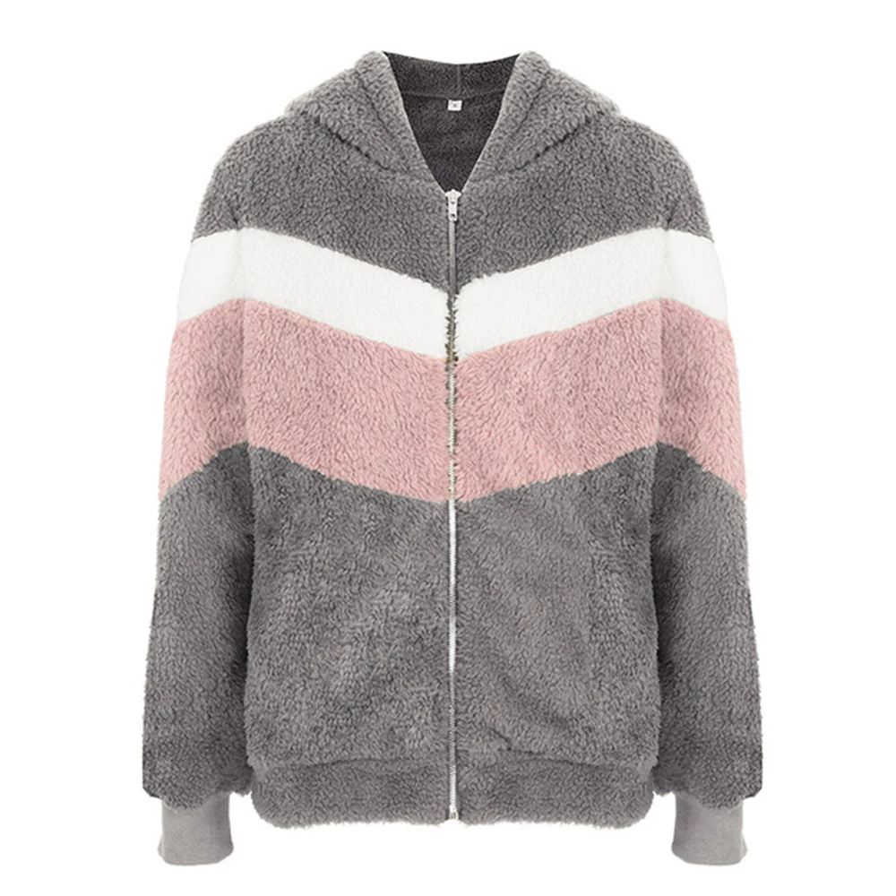 Парки в полоску, верхняя одежда, пальто для женщин, 2019, искусственный мех, модные толстовки, плюшевый жакет, женские мягкие куртки на молнии, повседневное пальто, серый, армейский зеленый