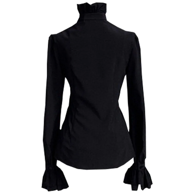 Женская Офисная рубашка COLDKER в викторианском винтажном стиле, однотонные Топы с длинным рукавом и рюшами, женская рубашка на пуговицах