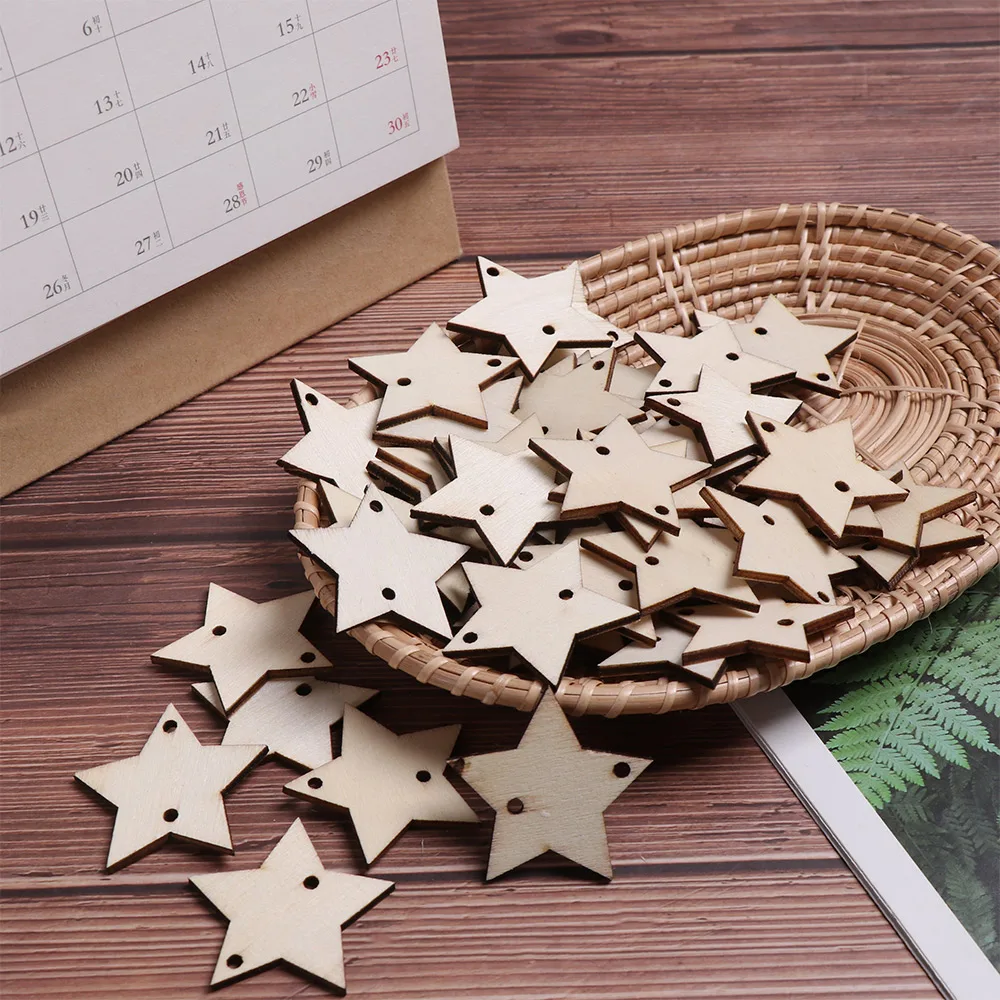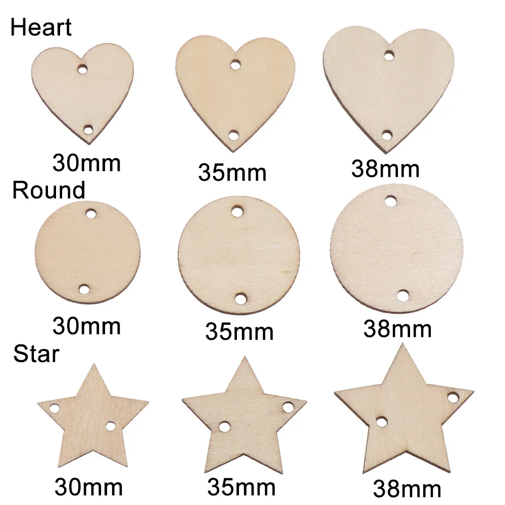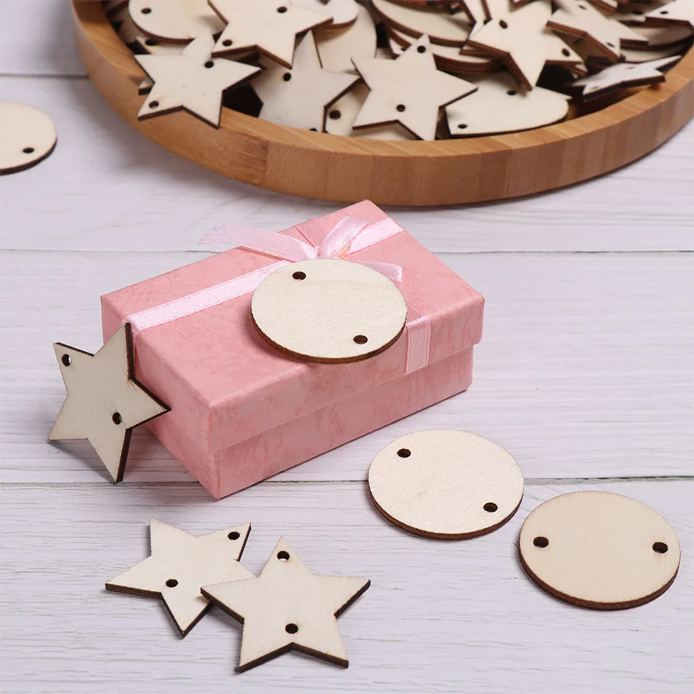 Лидер продаж, 50 шт. необработанных пустых звездочек/сердечек/круглых деревянных подвесных ярлыков, Знак логотипа для скрапбукинга, вечерние поделки, Декор для дома