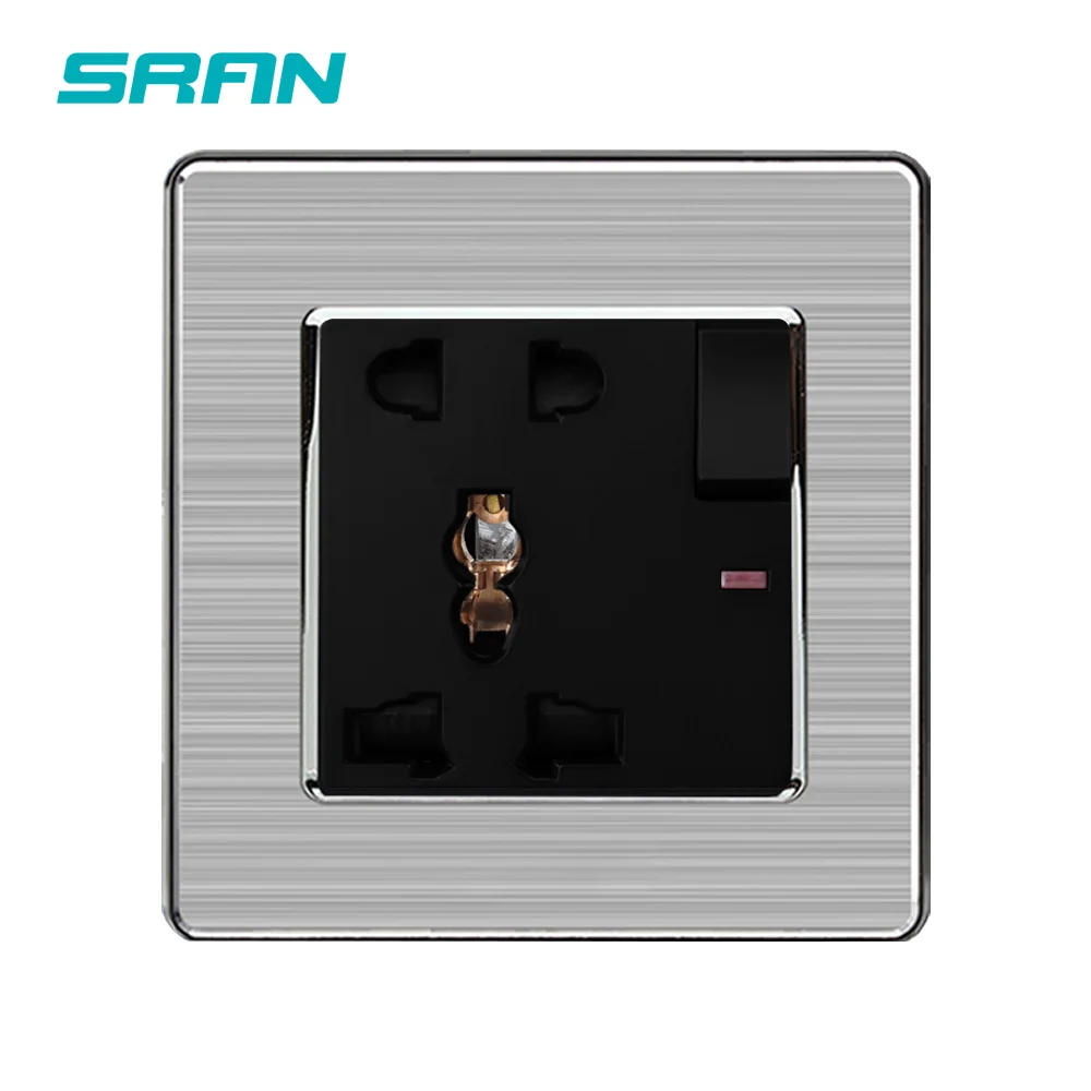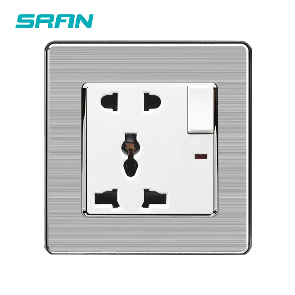 Пять отверстий Универсальная Розетка с переключателем, светодиодный индикатор 13A 250В (86 мм * 86 мм) Оцинкованный металлический край
