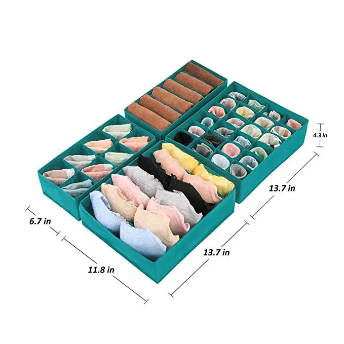 【 Нетканый материал 】прочный, дышащий и устойчивый к плесени. 【MAKE YOUR LIFE EASIER】 товар включает в себя 4 ящика: 6 ячеек, 8 ячеек, 7 ячеек и 24 ячейки. Хорошо подходит для ваших шарфов, галстуков, нижнего белья, трусов, носков и других мелких вещей. 【Размеры: 13 "X 6,5" X 4-1/4 "H для 6 ячеек и 8 ячеек; 12" X 13 "X 4-1/4" H для 7 ячеек и 24 ячеек. 【Складной и компактный 】 легко хранить и экономить пространство, когда он не используется.