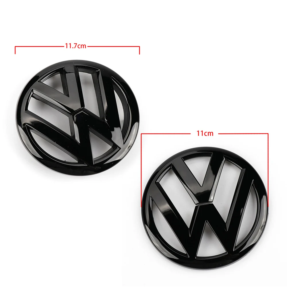 117 мм глянцевый черный значок на переднюю решетку + 110 мм глянцевый черный значок на заднюю крышку багажника для VW Volkswagen Polo 2009-2013