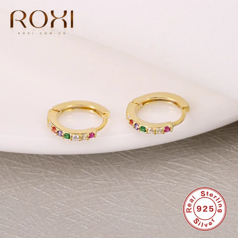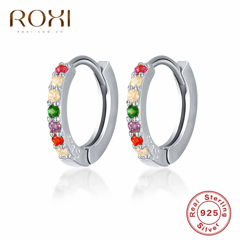 ROXI 100% Стерлинговое Серебро 925 пробы мини круглые серьги Радуга CZ серьги гвоздики для женщин подарок корейские серьги циркония ювелирные изделия
