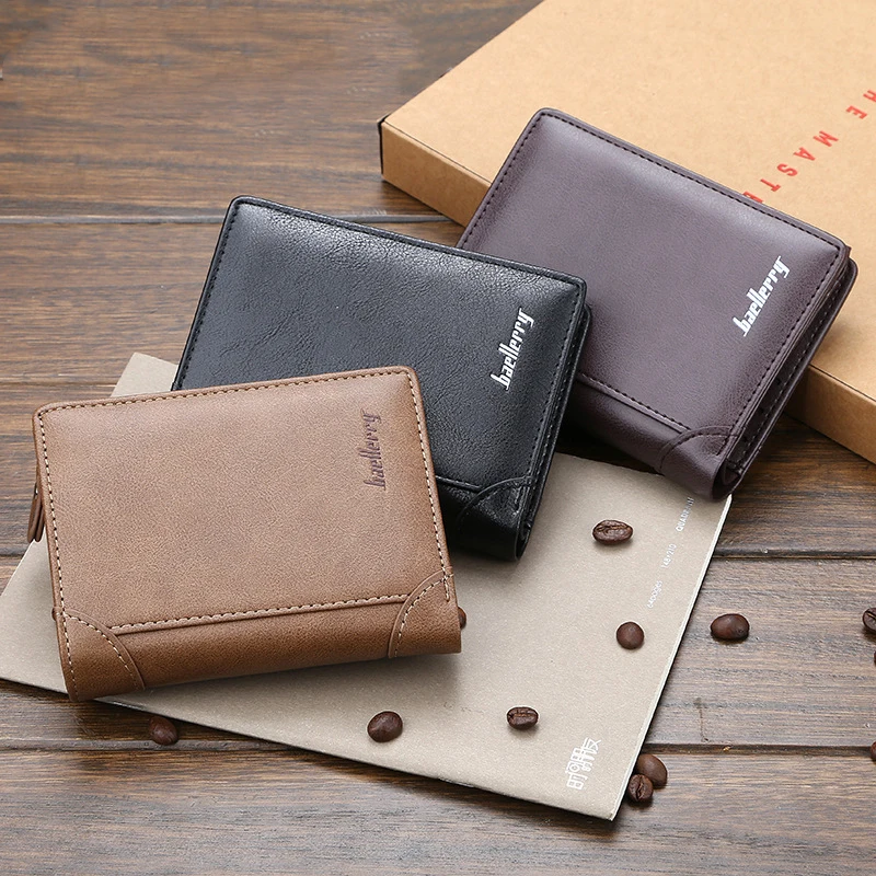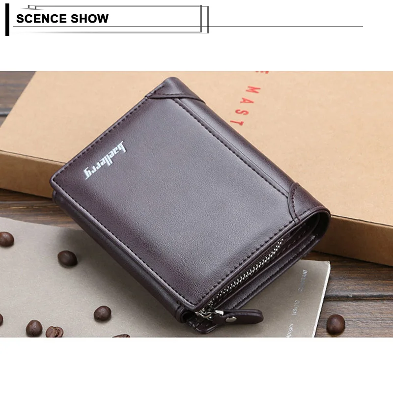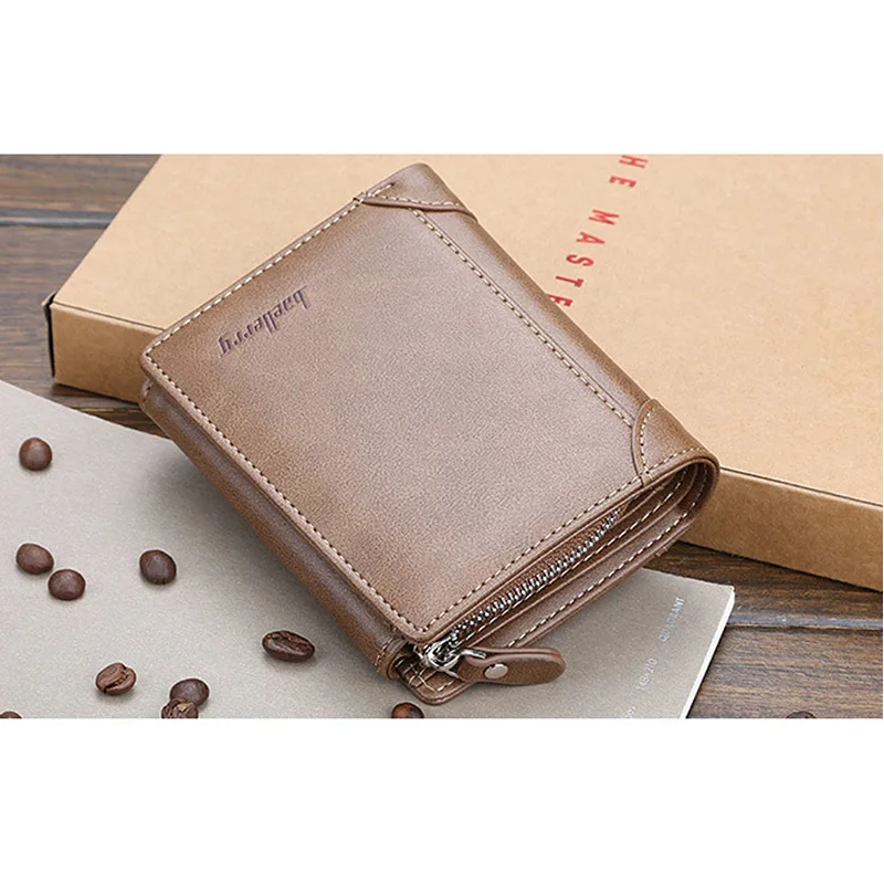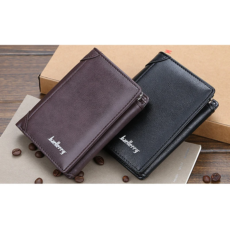 Тонкий мужской короткий кошелек в три сложения, зажим для денег, кошелек на молнии, мульти слоты, кредитный держатель для карт