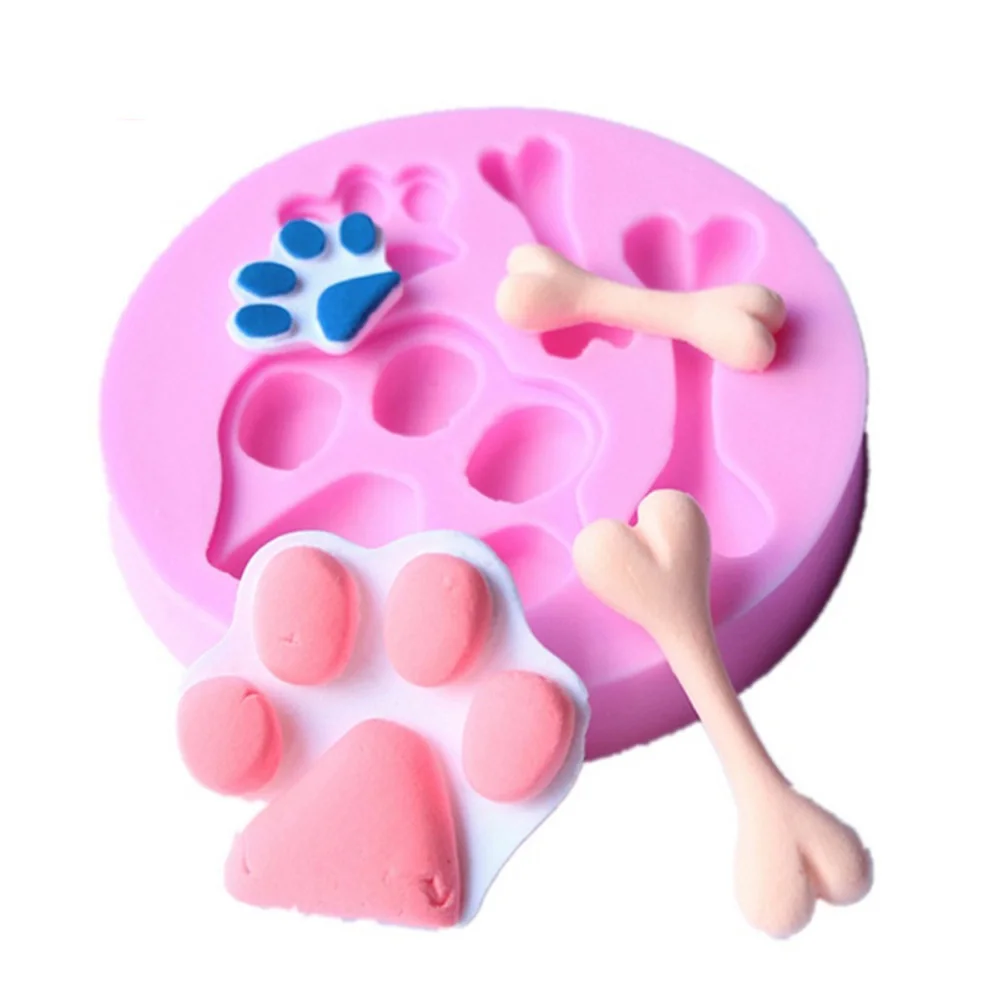 Dog Feet Footprint Bone Silicone Mold Fondant Cake Decoration Kitchen Cooking Tools Chocolate Mold